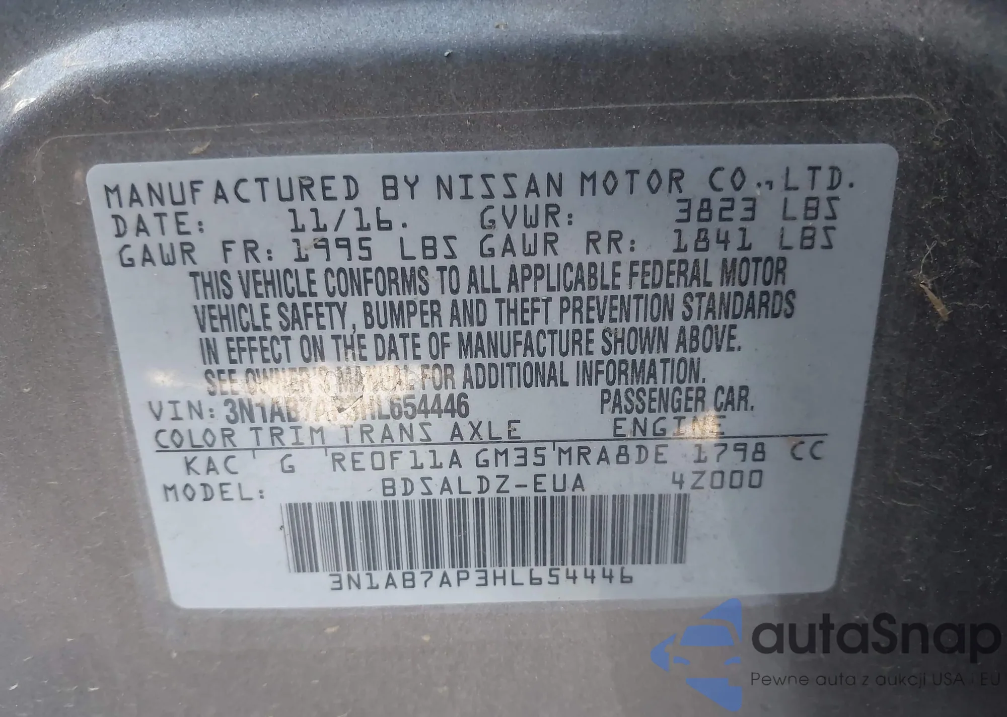 • VIN 3N1AB7AP3HL654446