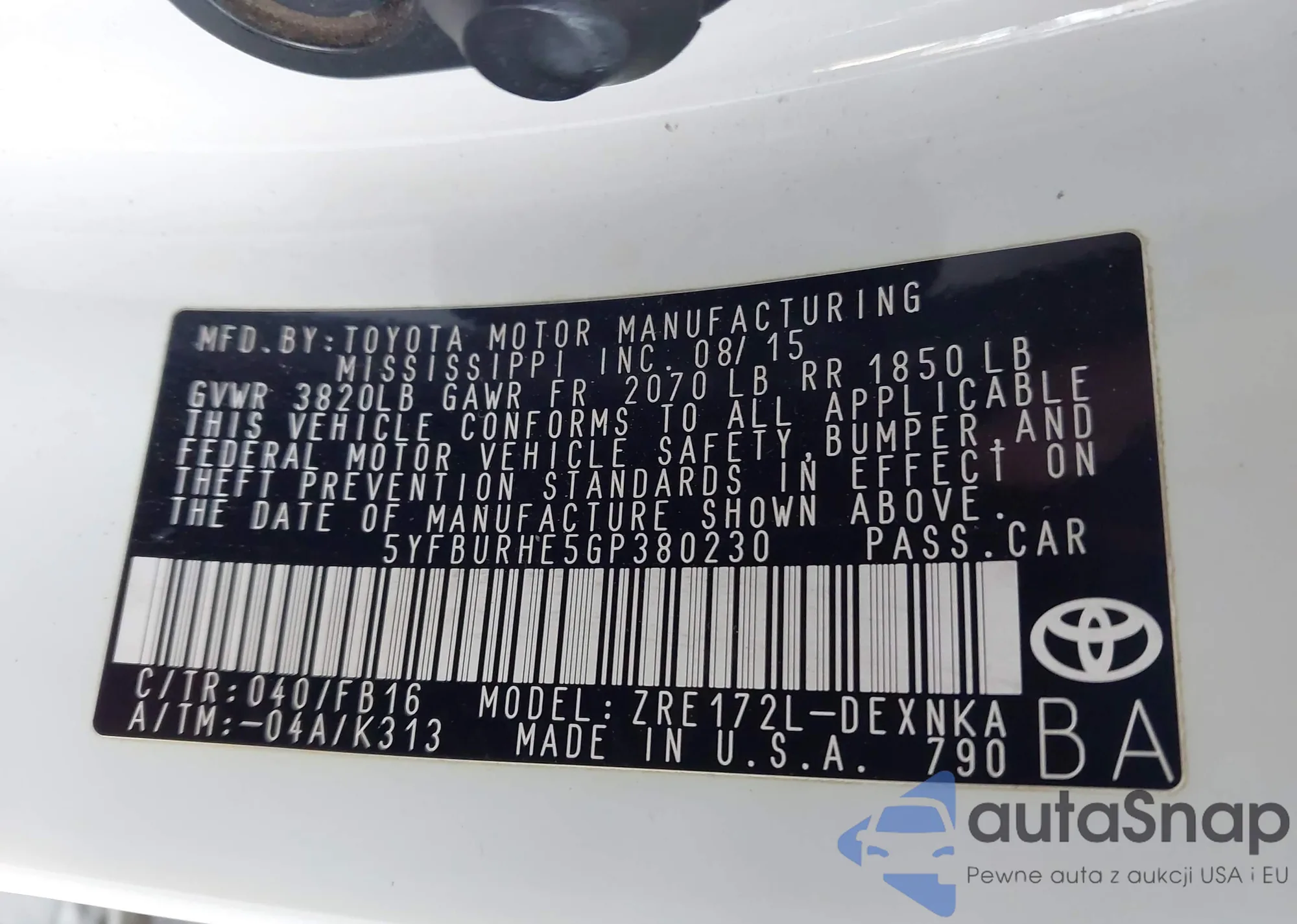 LOT: 43459590 VIN: JTDKT4K37A5288523