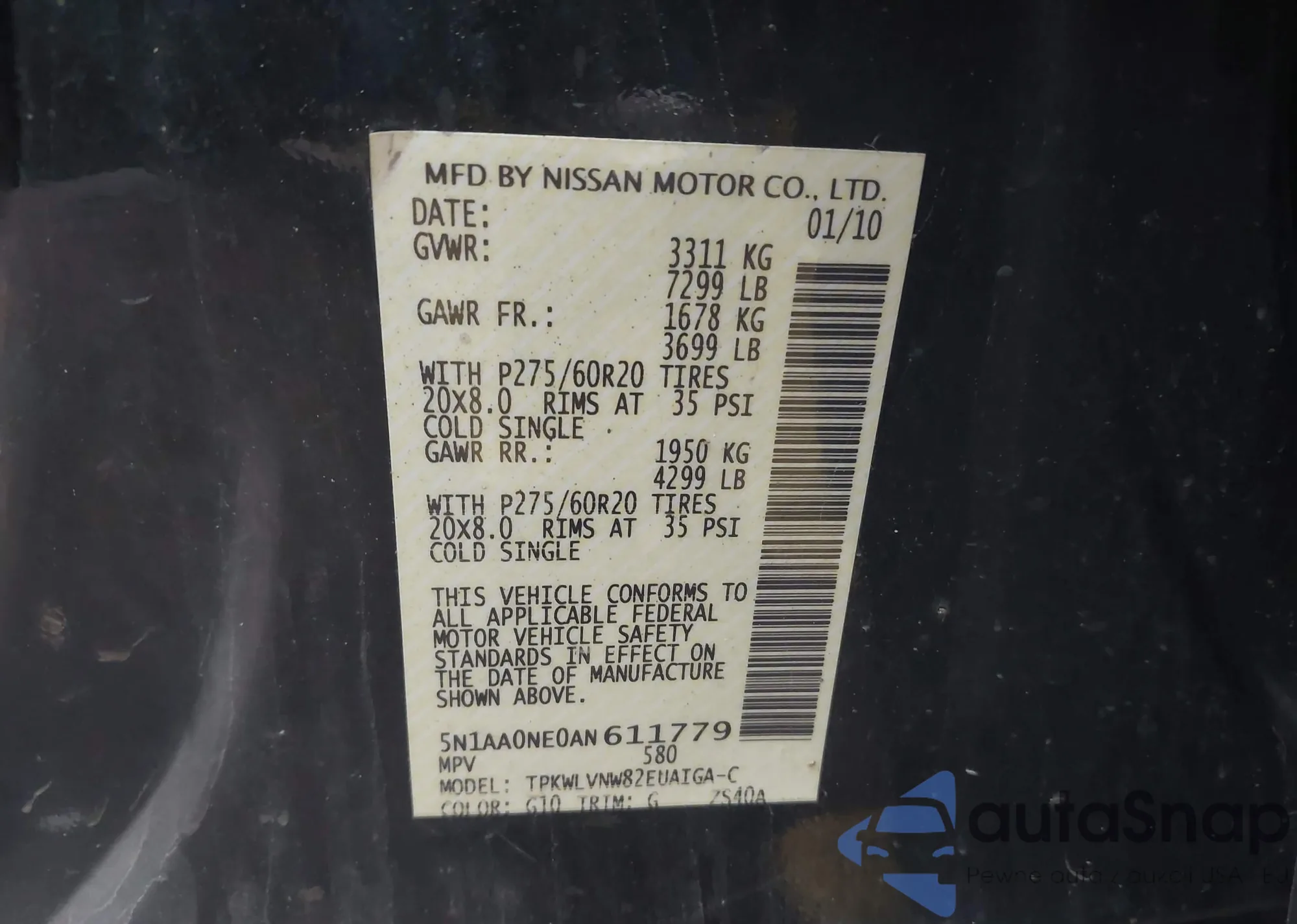 • VIN 5N1AA0NE0AN611779