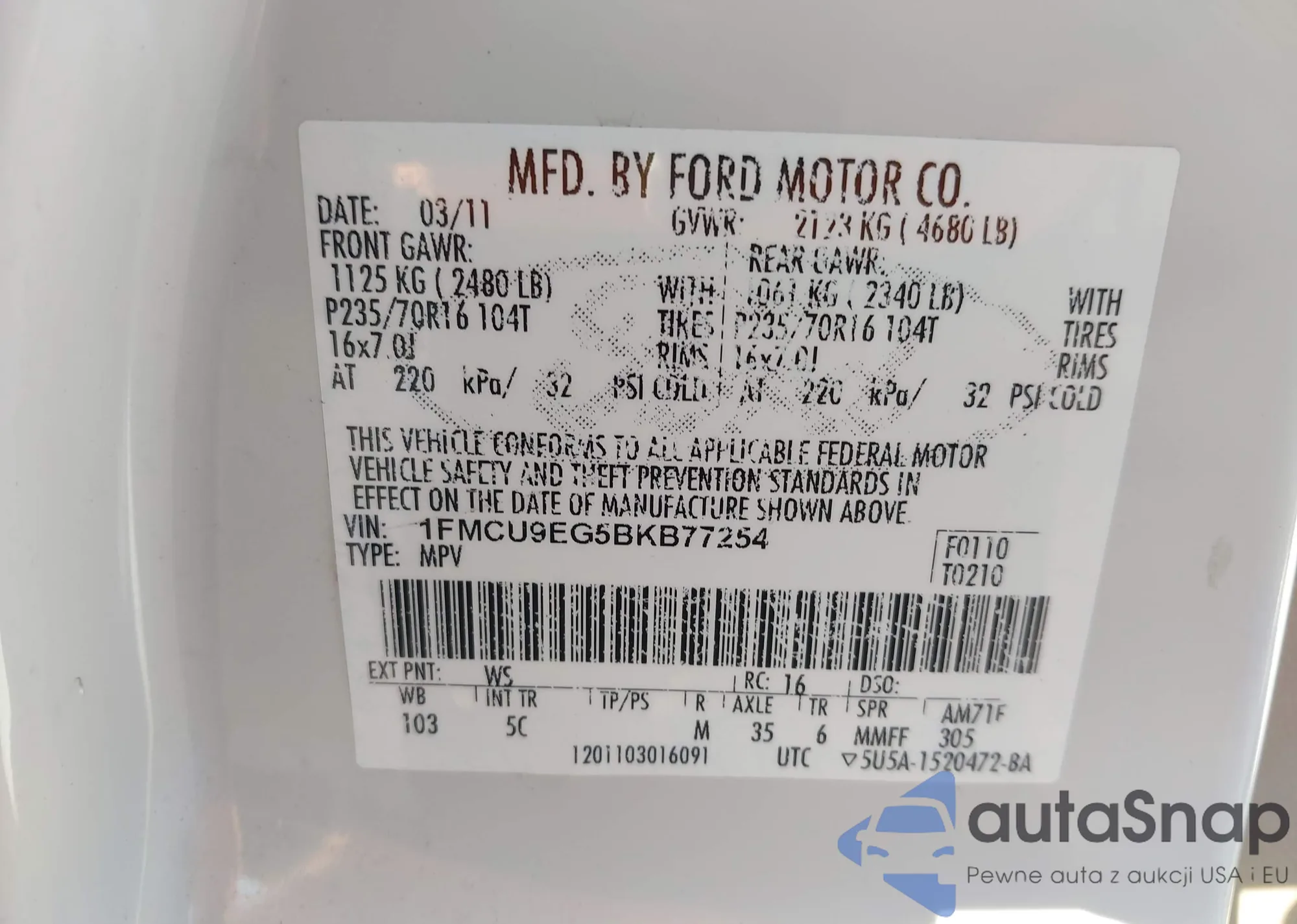 • VIN KL79MUSL4RB067015