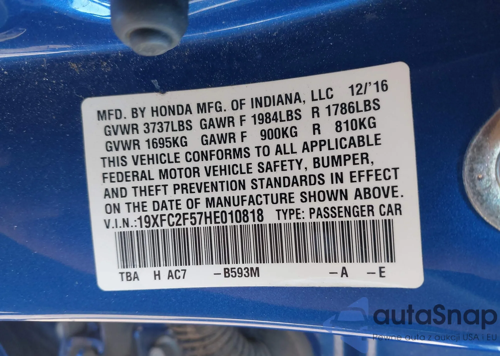 • VIN 19XFC2F57HE010818