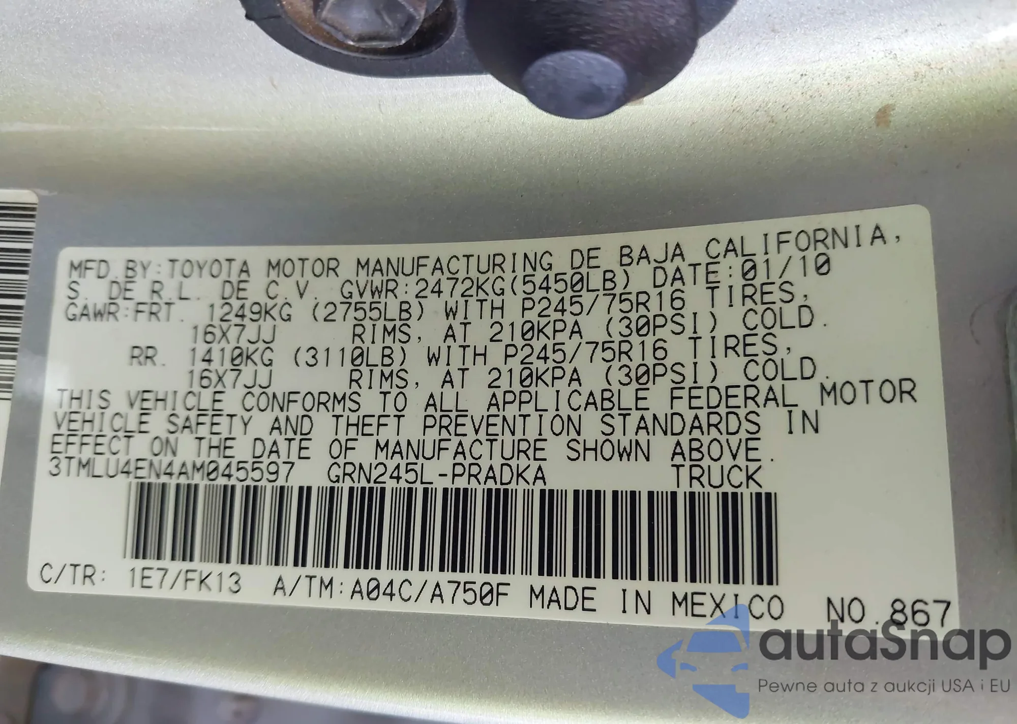 • VIN 3TMLU4EN4AM045597