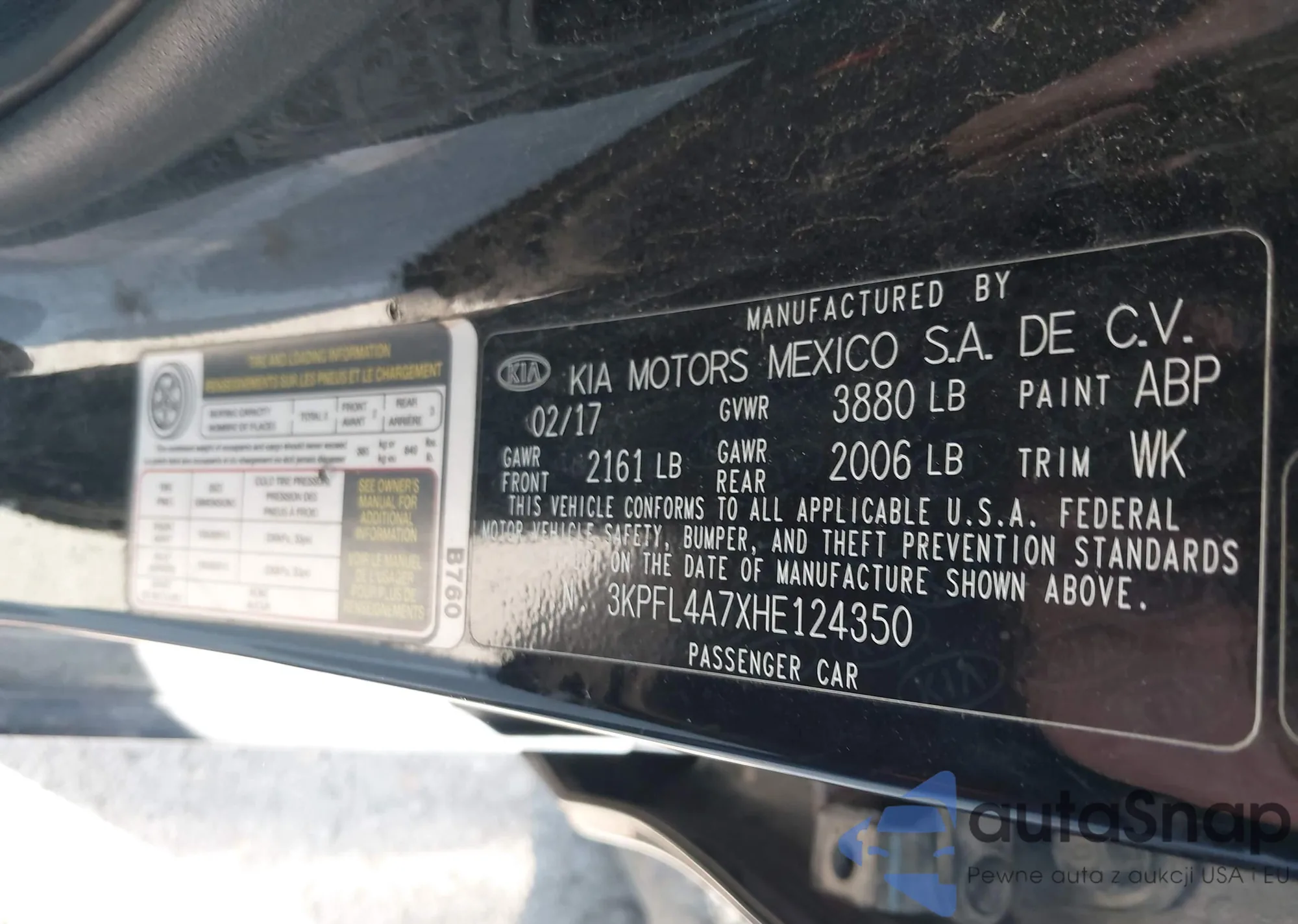 LOT: 43272436 VIN: 3KPFL4A7XHE124350