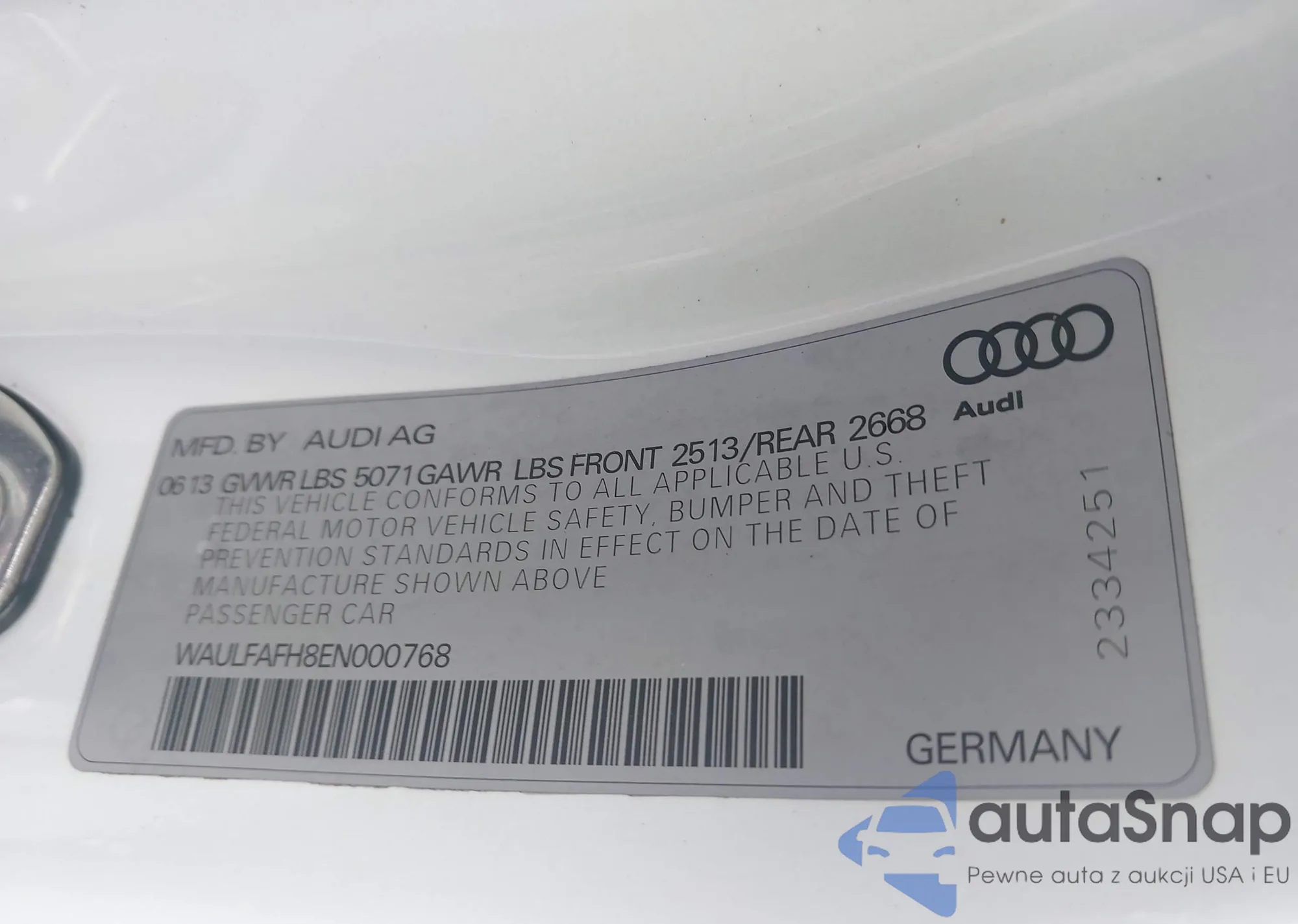 • VIN WAULFAFH8EN000768