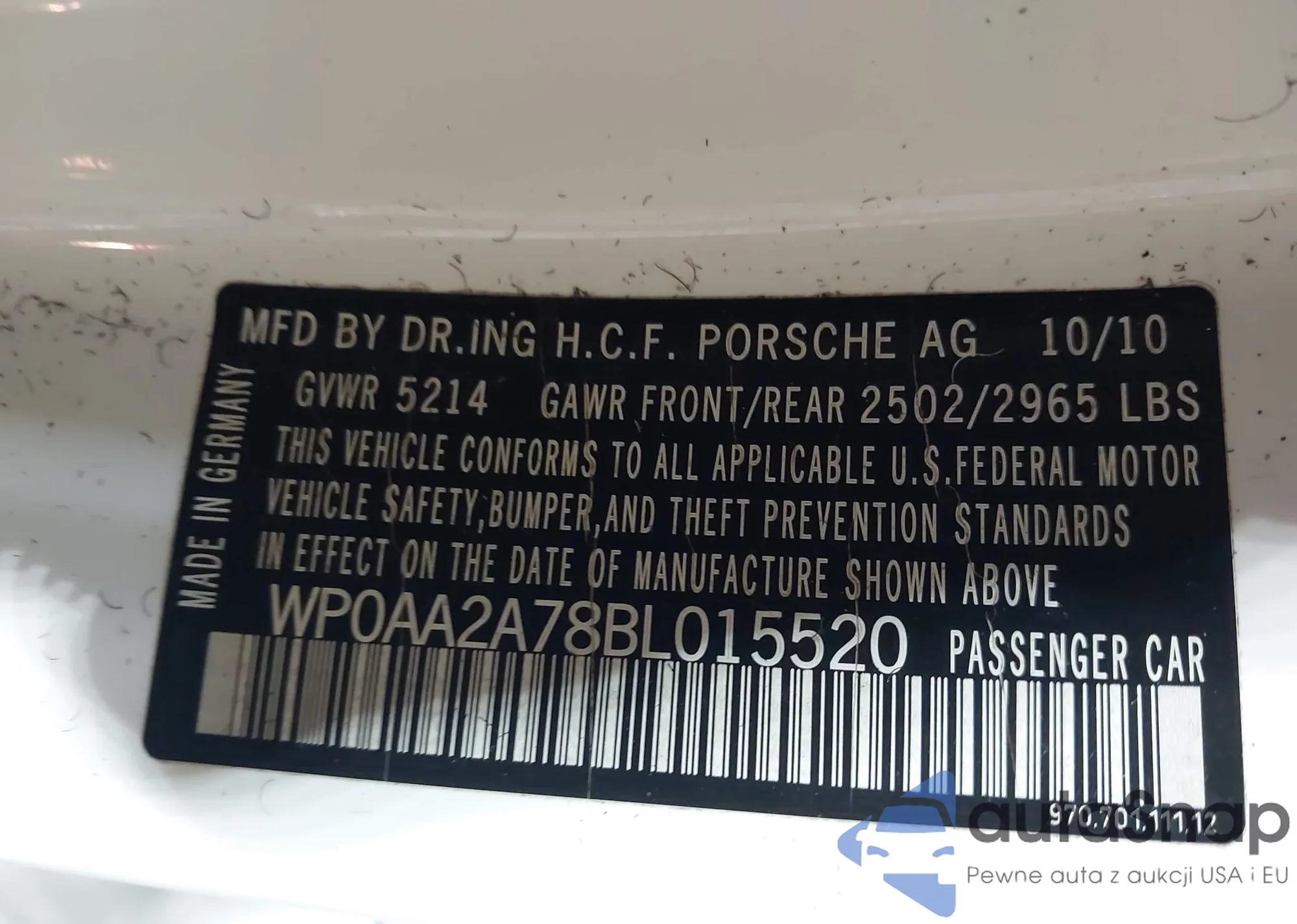 • VIN WP0AA2A78BL015520