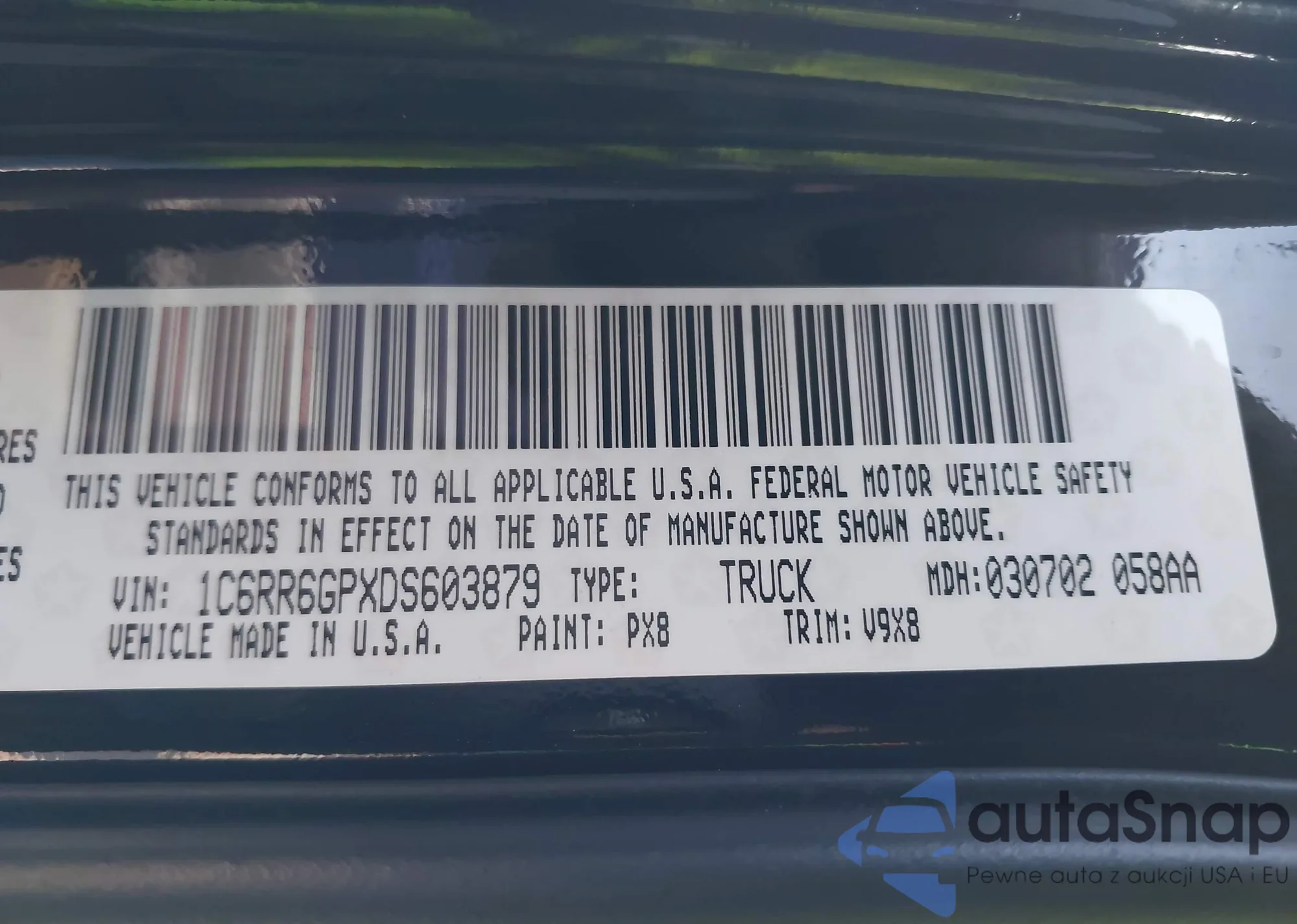 • VIN 1C6RR6GPXDS603879