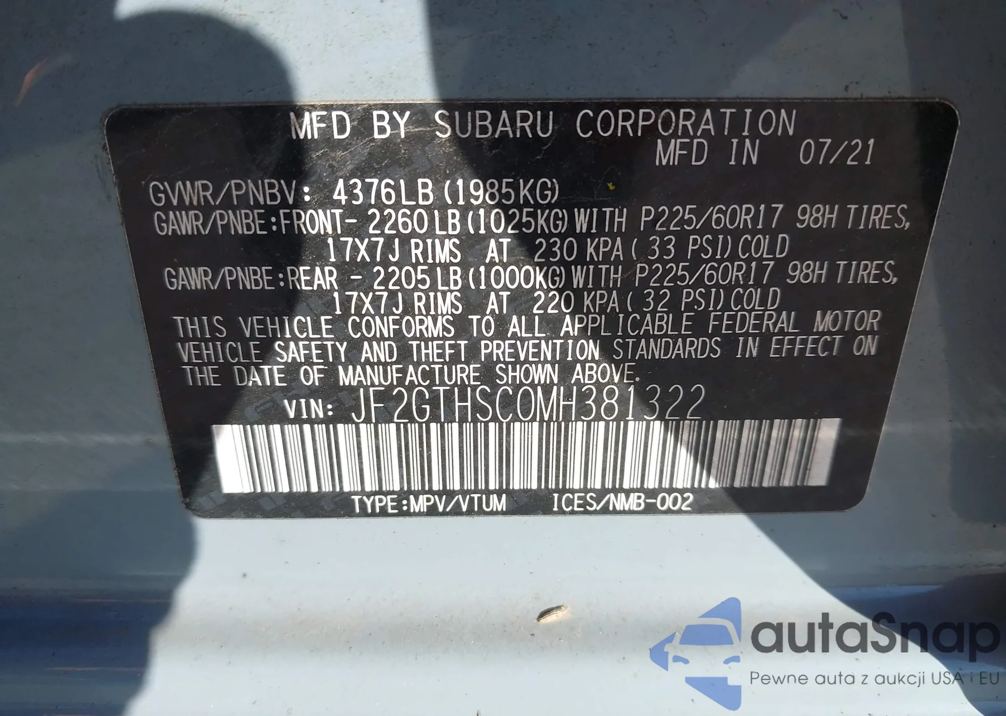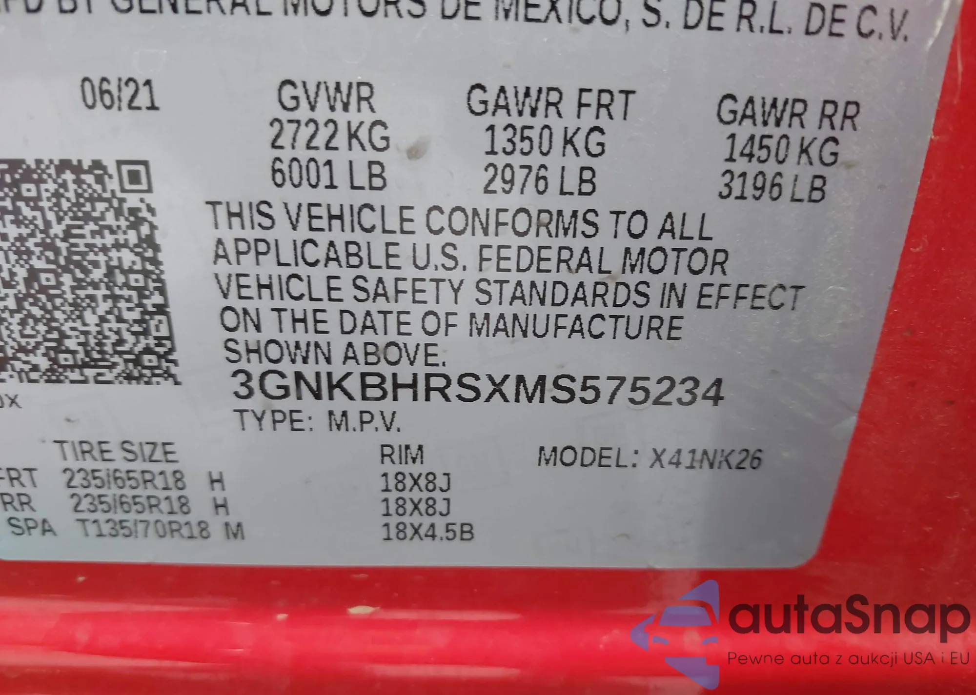 LOT: 43607751 VIN: 3GNKBHRSXMS575234