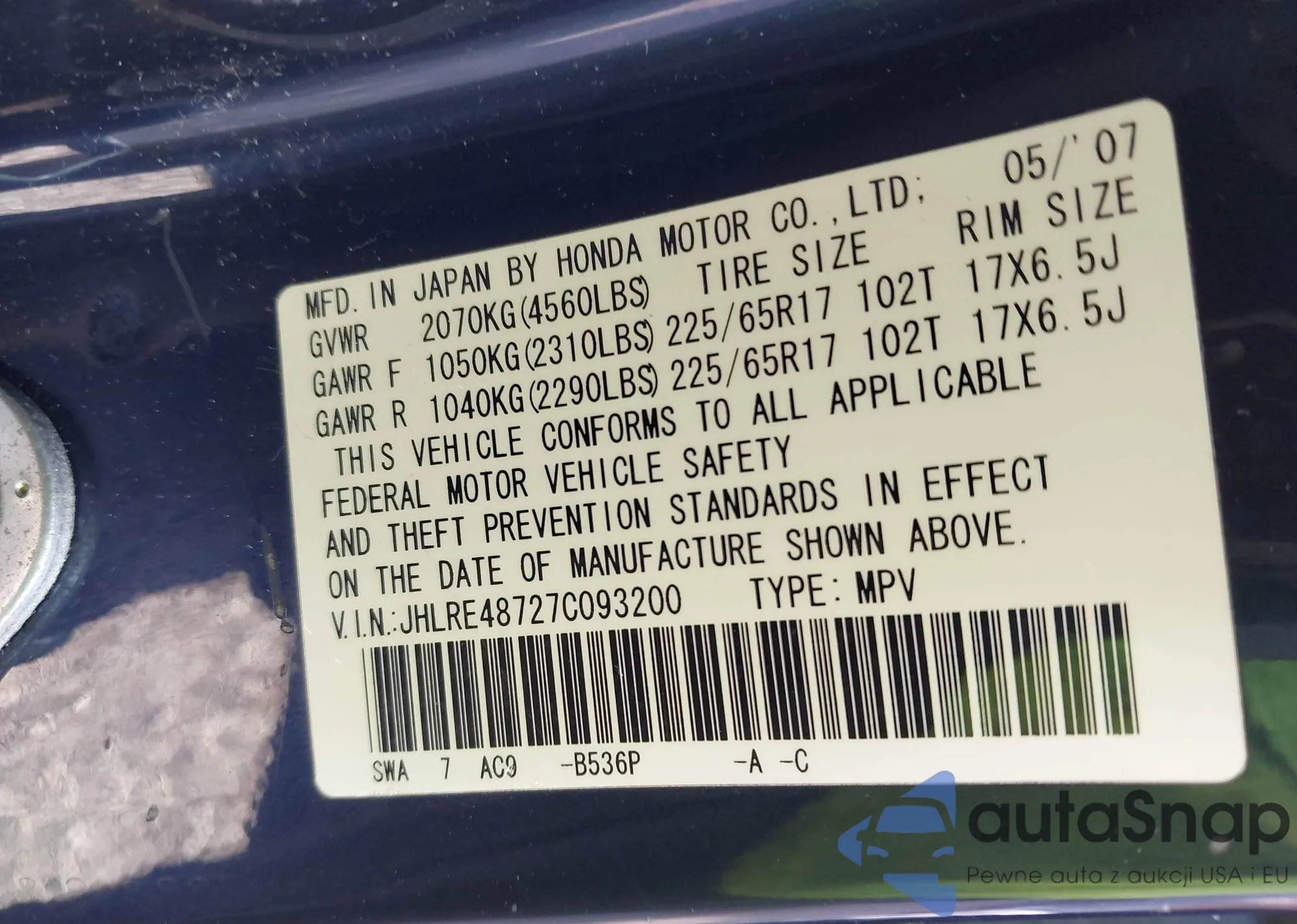 • VIN 2HGFC2F52GH512897