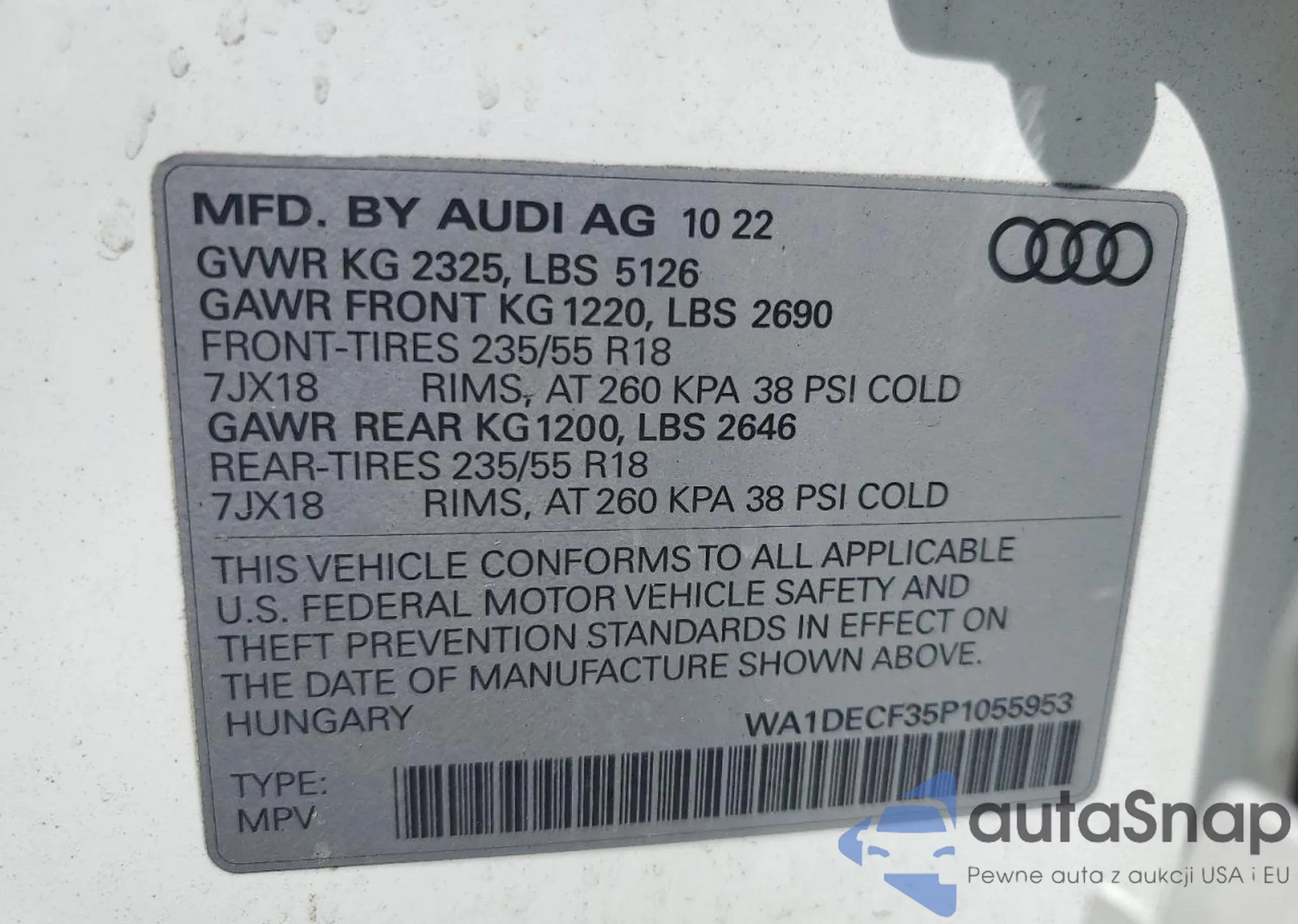 LOT: 91663045 VIN: 5NPEB4AC0BH257293