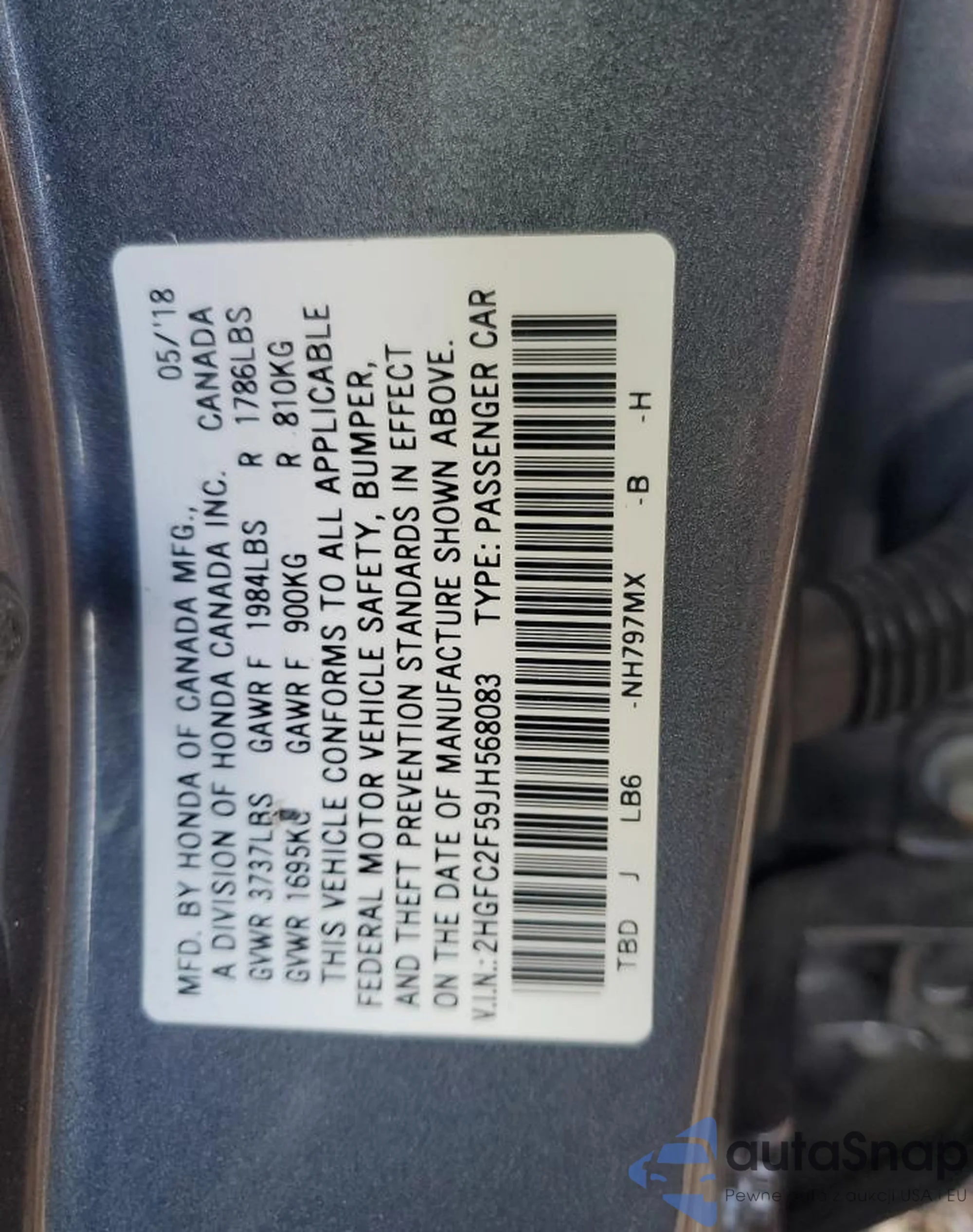 • VIN 2HGFC2F59JH568083