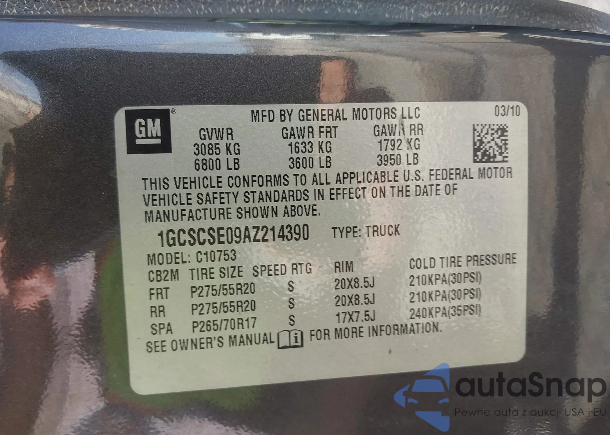 LOT: 43698105 VIN: 1GCSCSE09AZ214390