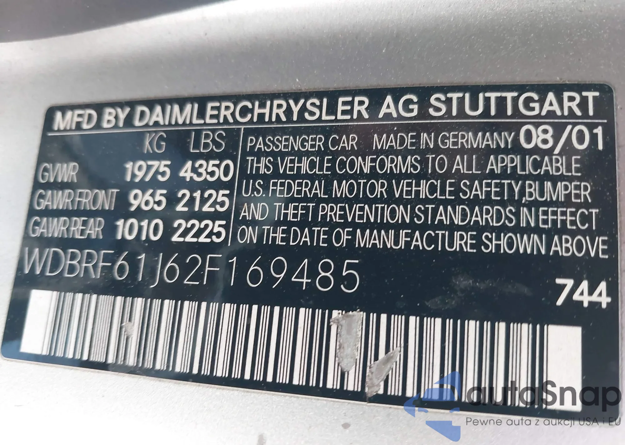 • VIN WDBRF61J62F169485