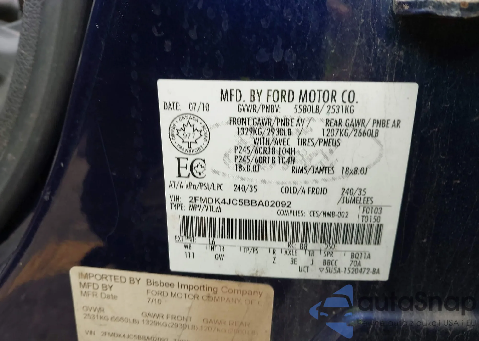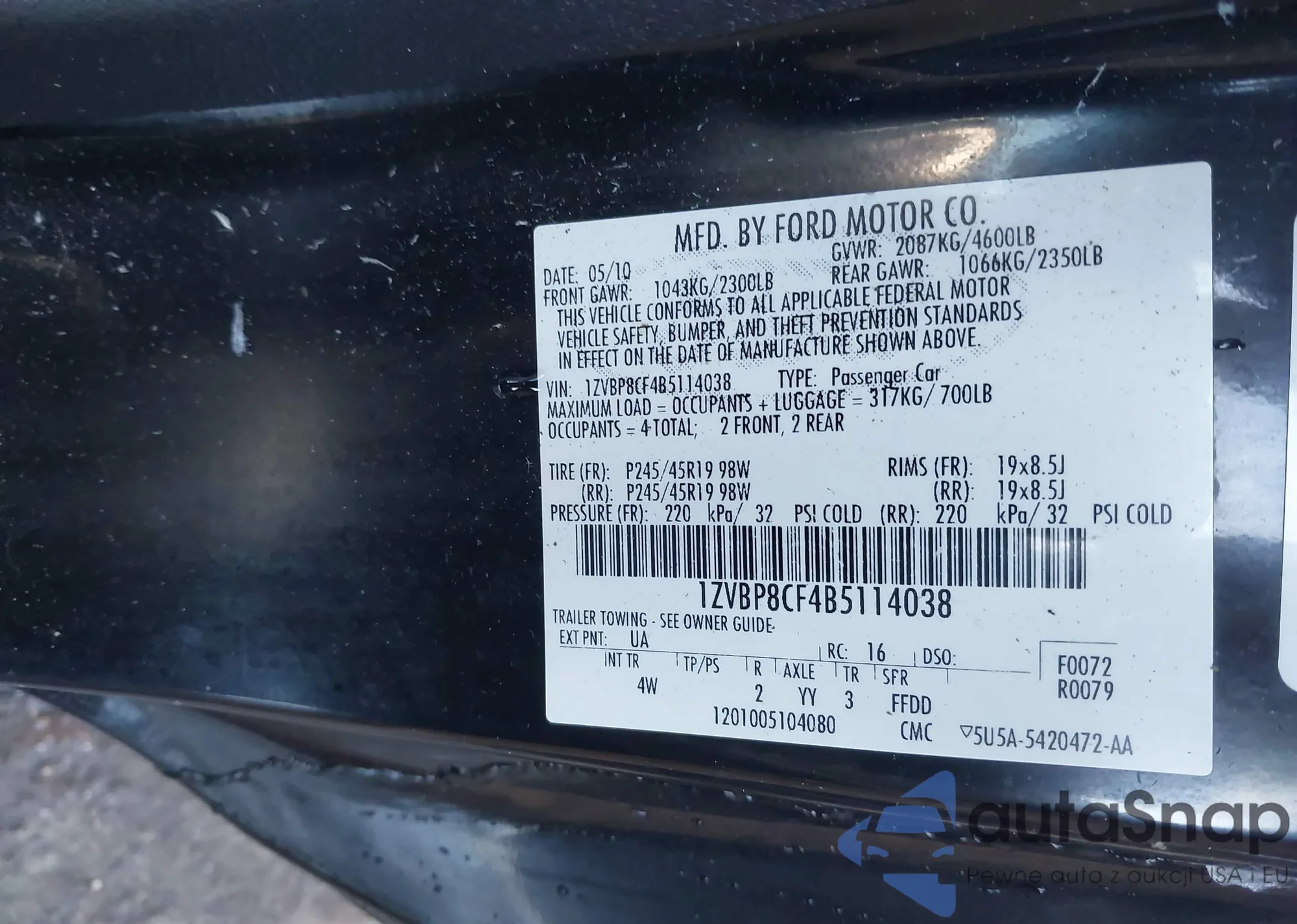LOT: 41193298 VIN: 1ZVBP8CF4B5114038