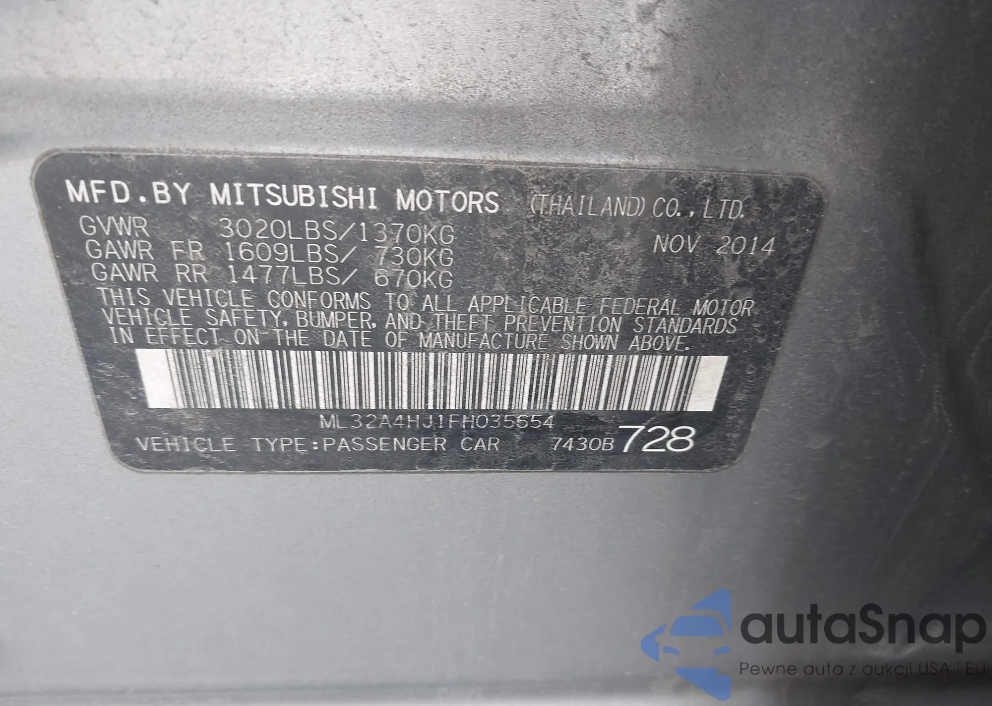 • VIN ML32A4HJ1FH035654