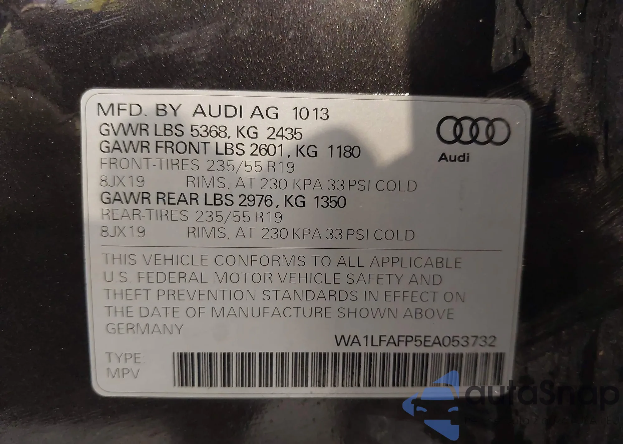 LOT: 43249951 VIN: WA1LFAFP5EA053732