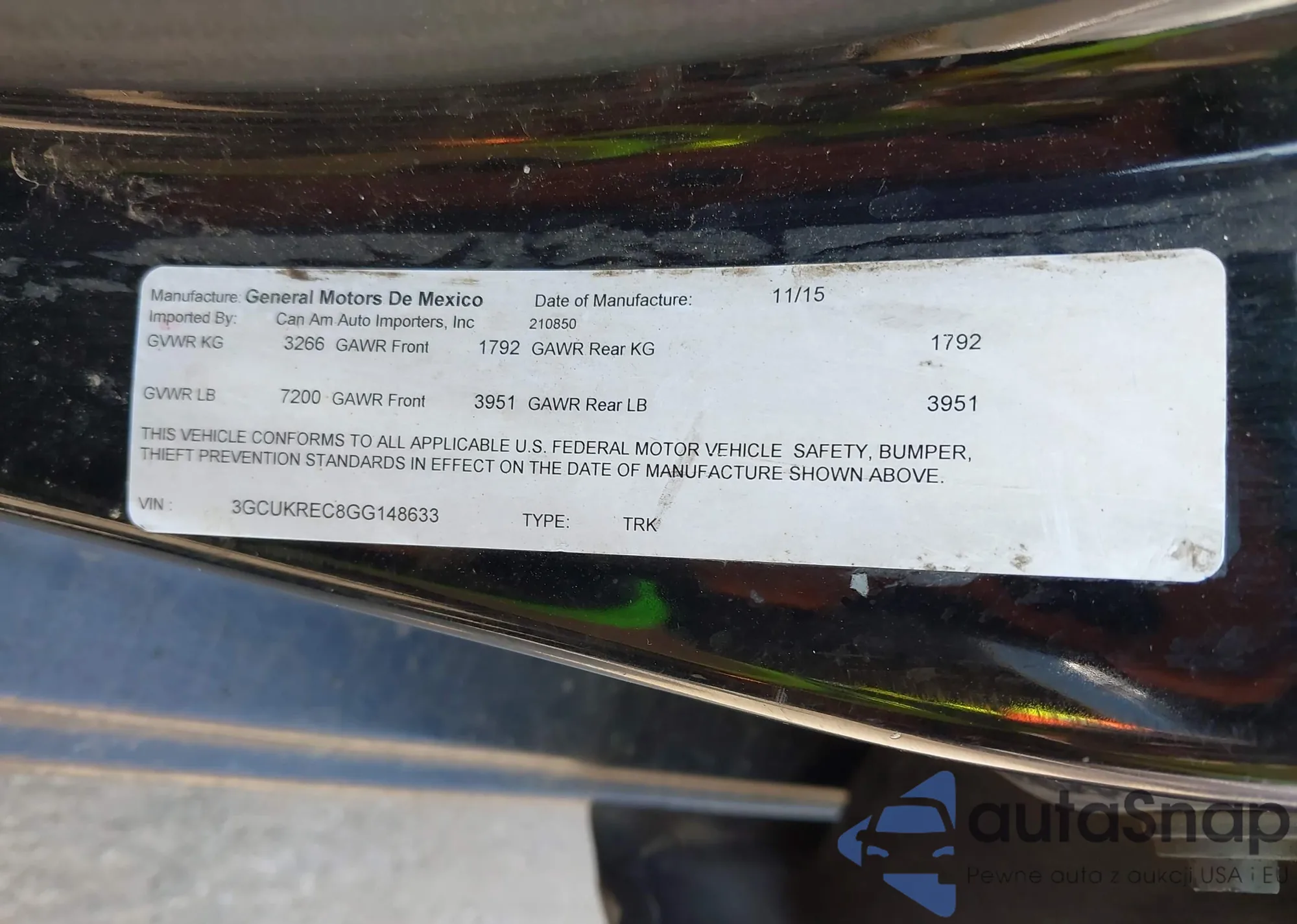 • VIN 3GCUKREC8GG148633
