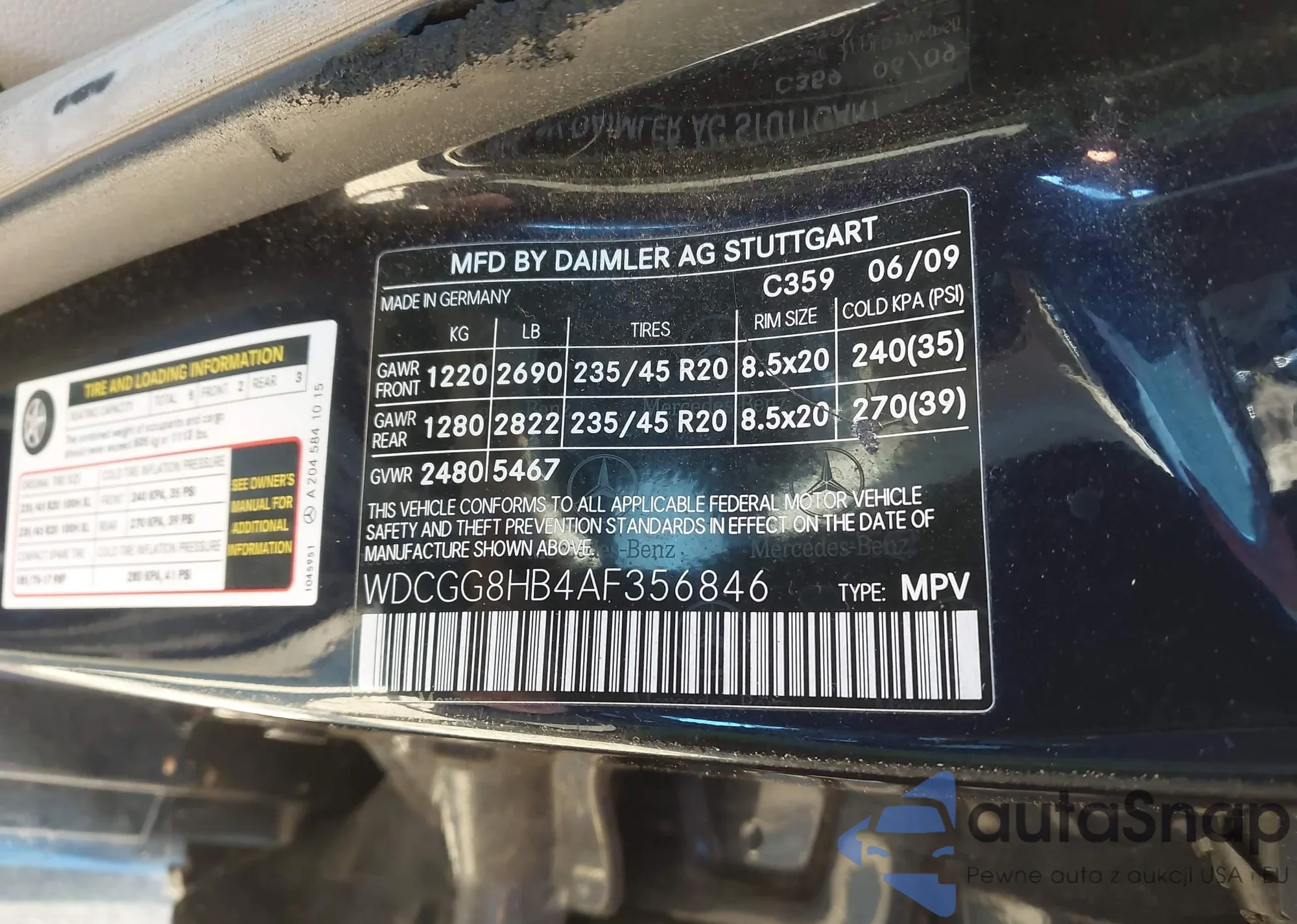 LOT: 43530293 VIN: WDCGG8HB4AF356846