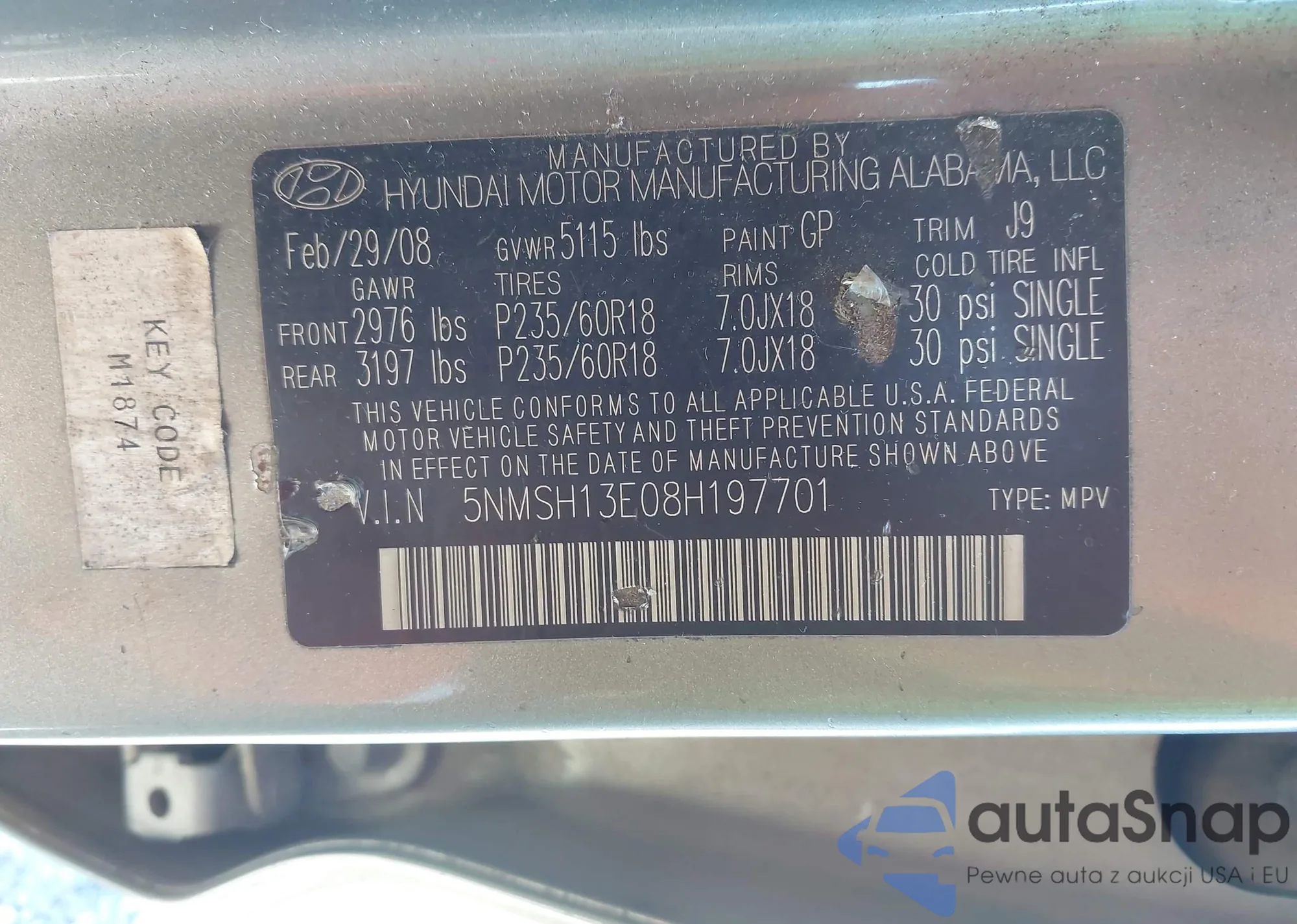 LOT: 43491188 VIN: 5NMSH13E08H197701