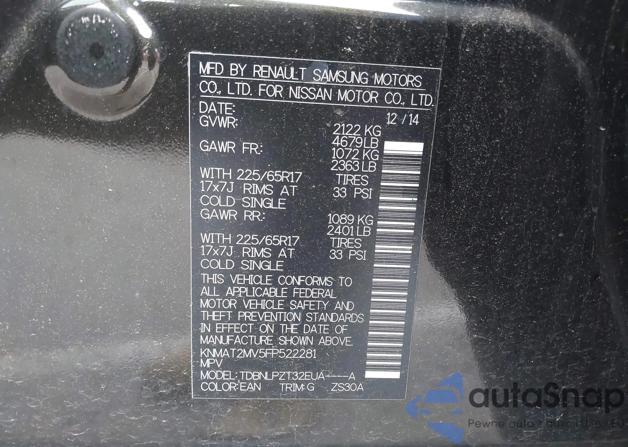 • VIN 5N1AA0NE4CN612419