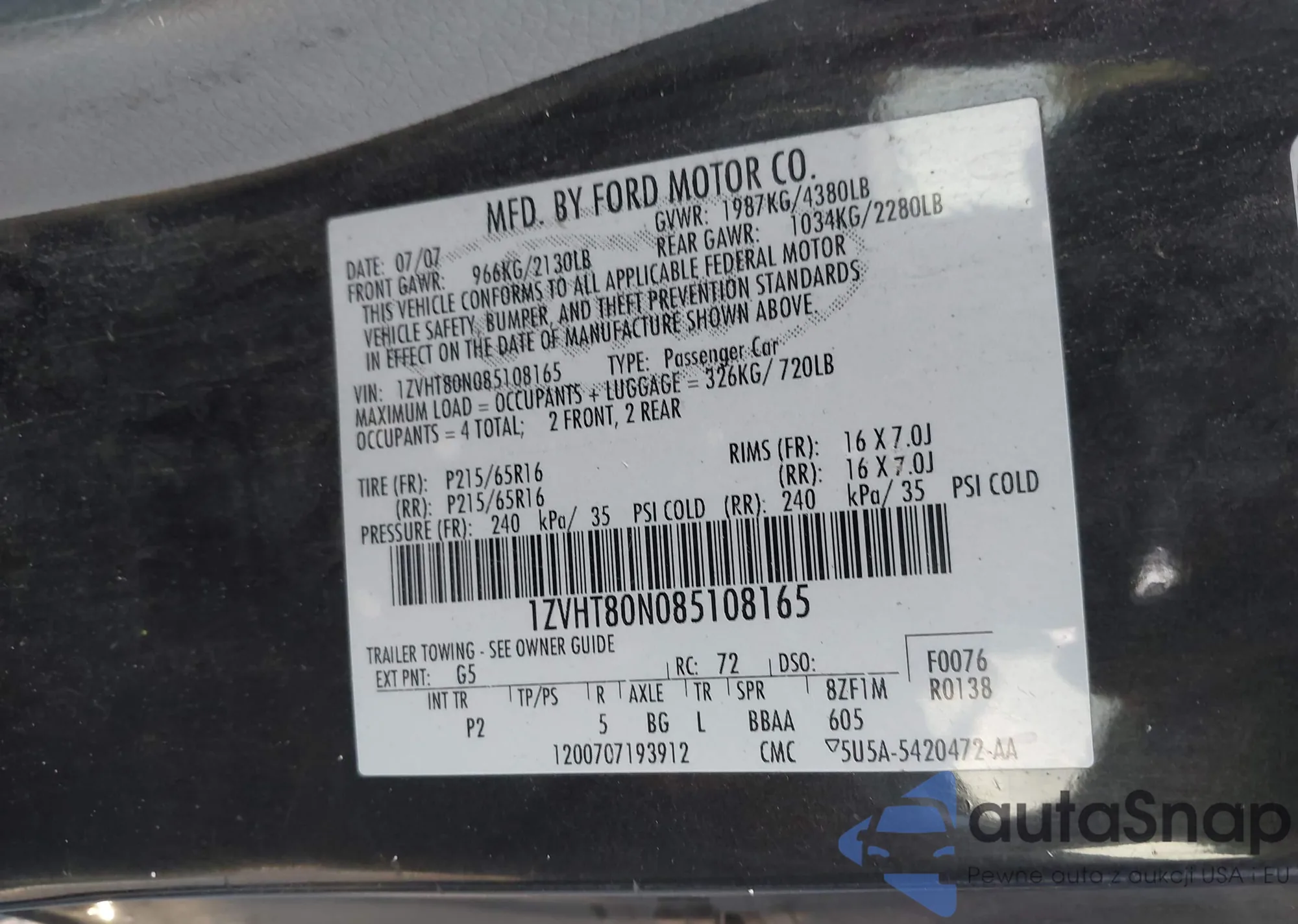 • VIN 4T1FA38P47U119033
