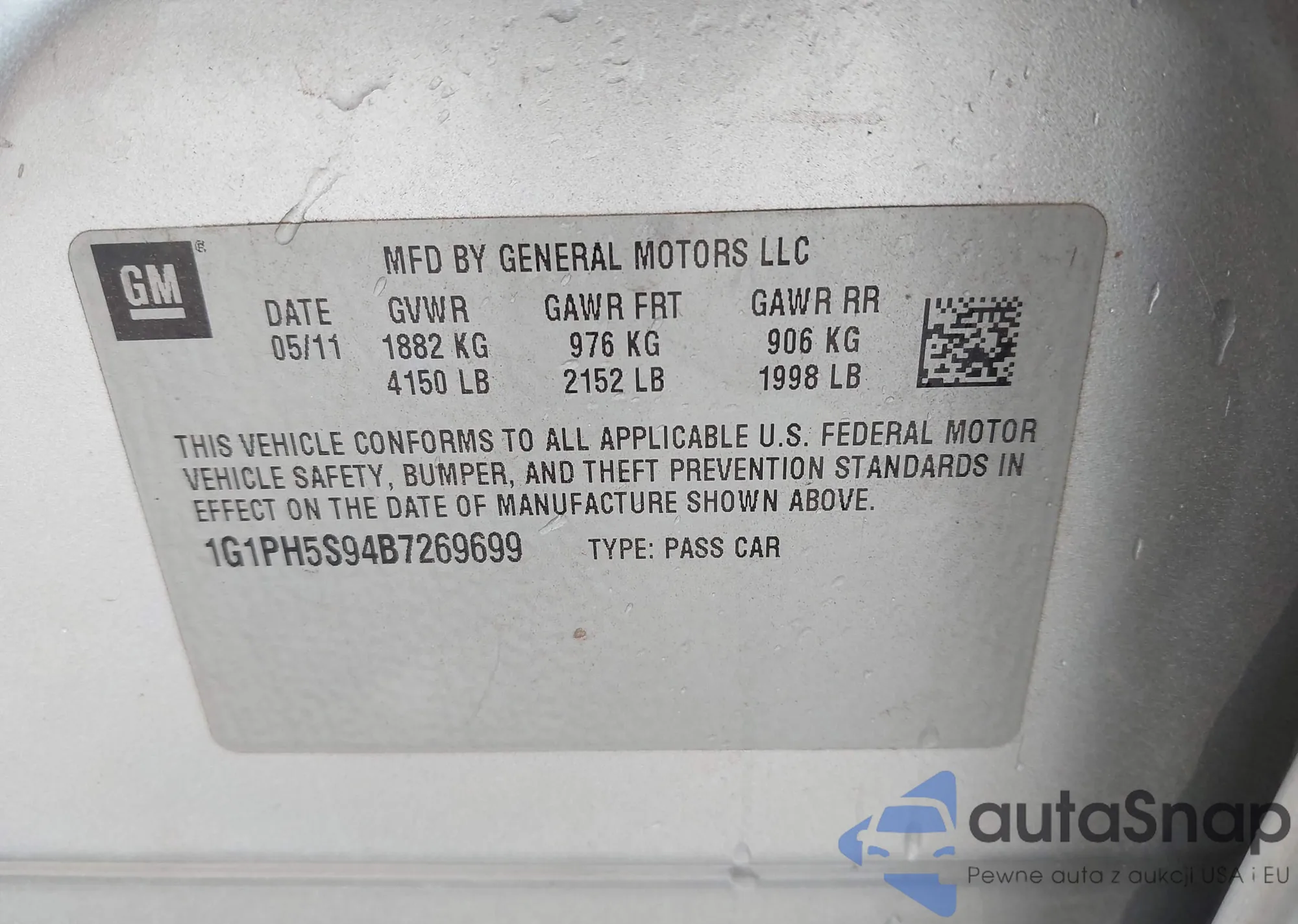 LOT: 43590003 VIN: 1G1PH5S94B7269699