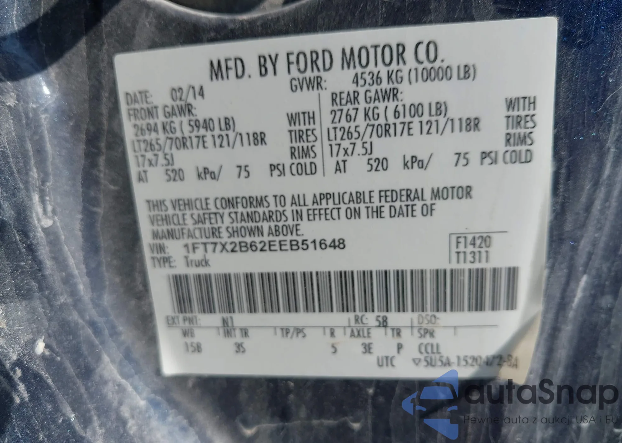 LOT: 43319396 VIN: 1FM5K7D88EGA63866