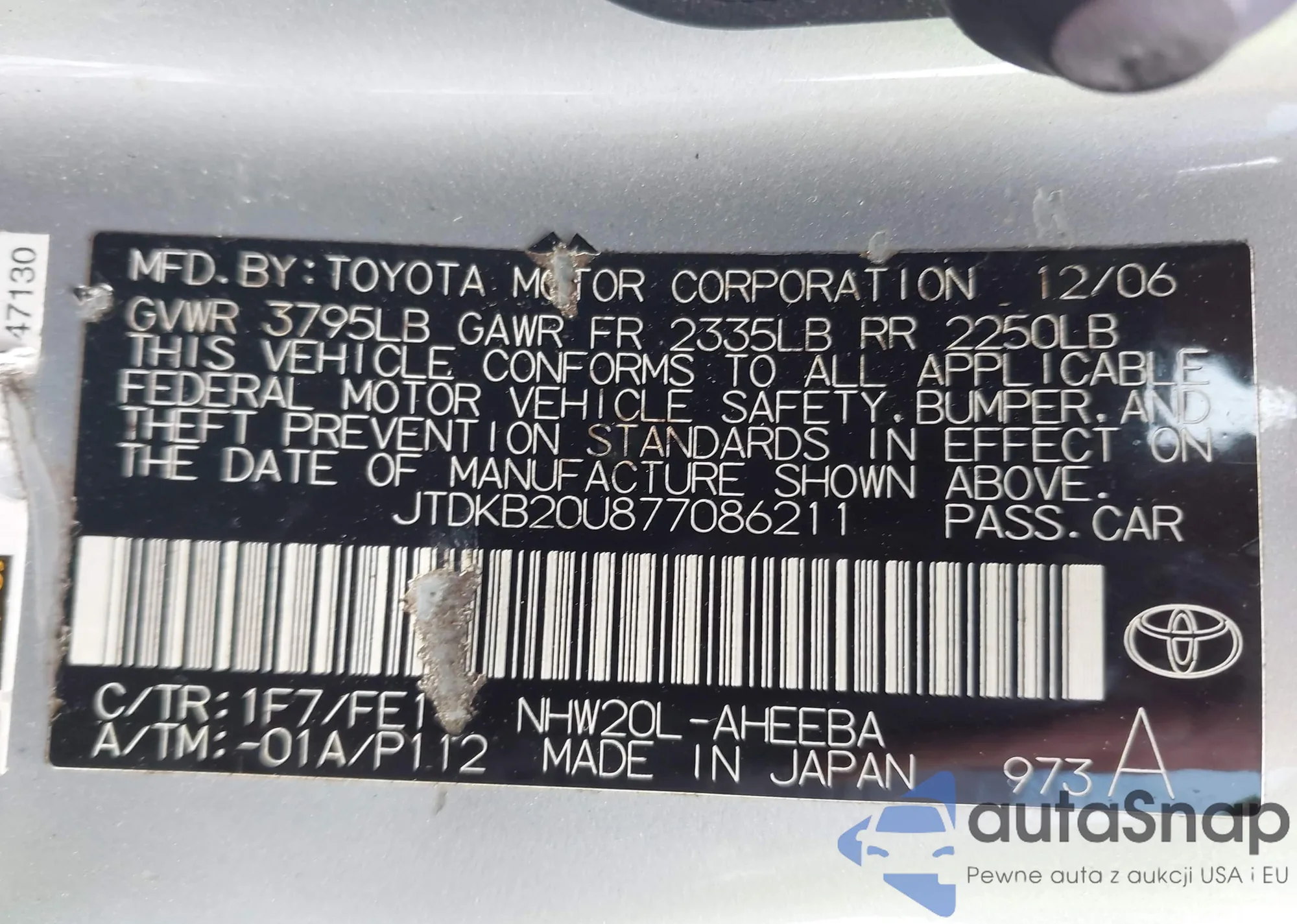 LOT: 43387196 VIN: JTDKB20U877086211