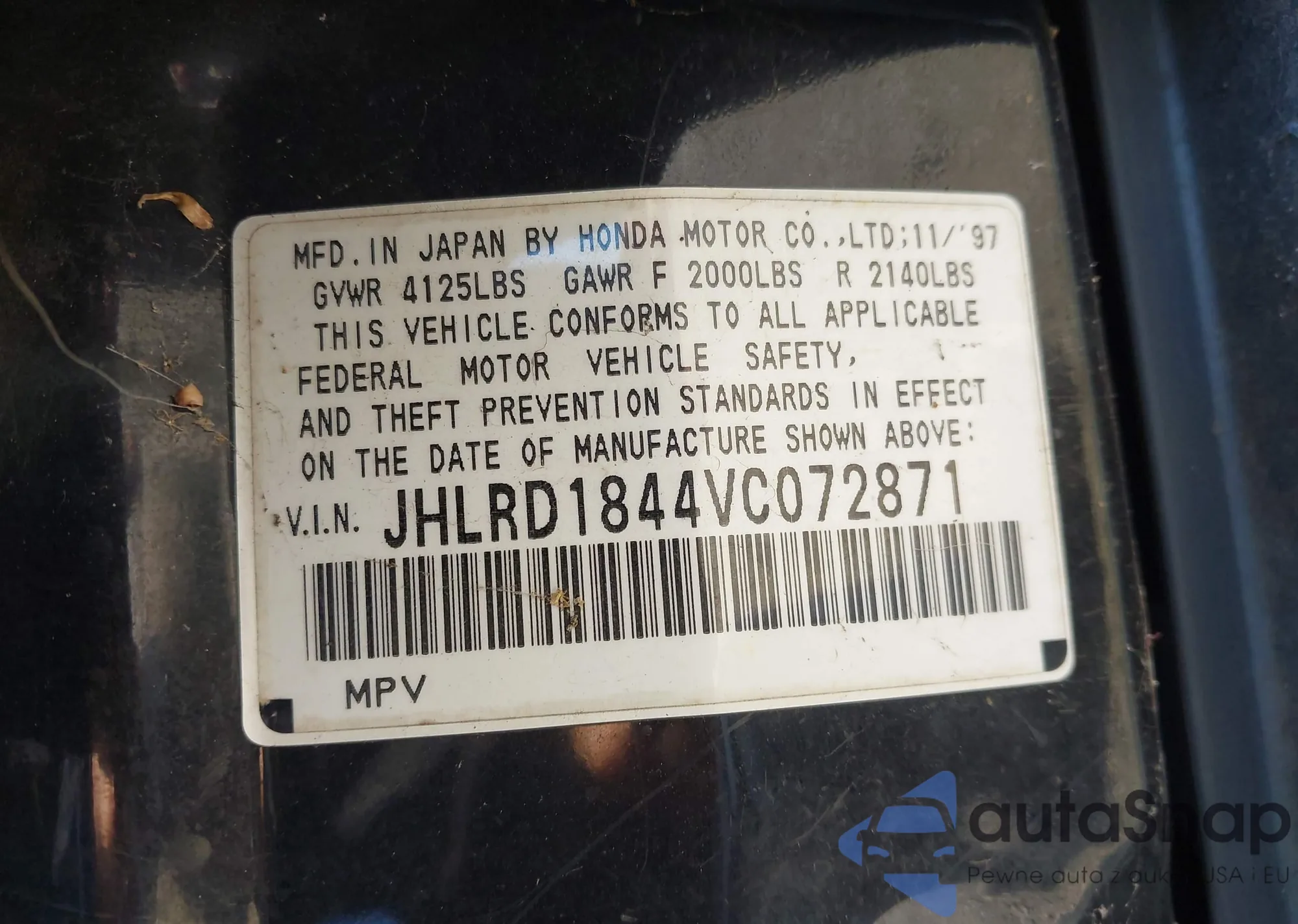 LOT: 43314073 VIN: 1HGCP26899A042841
