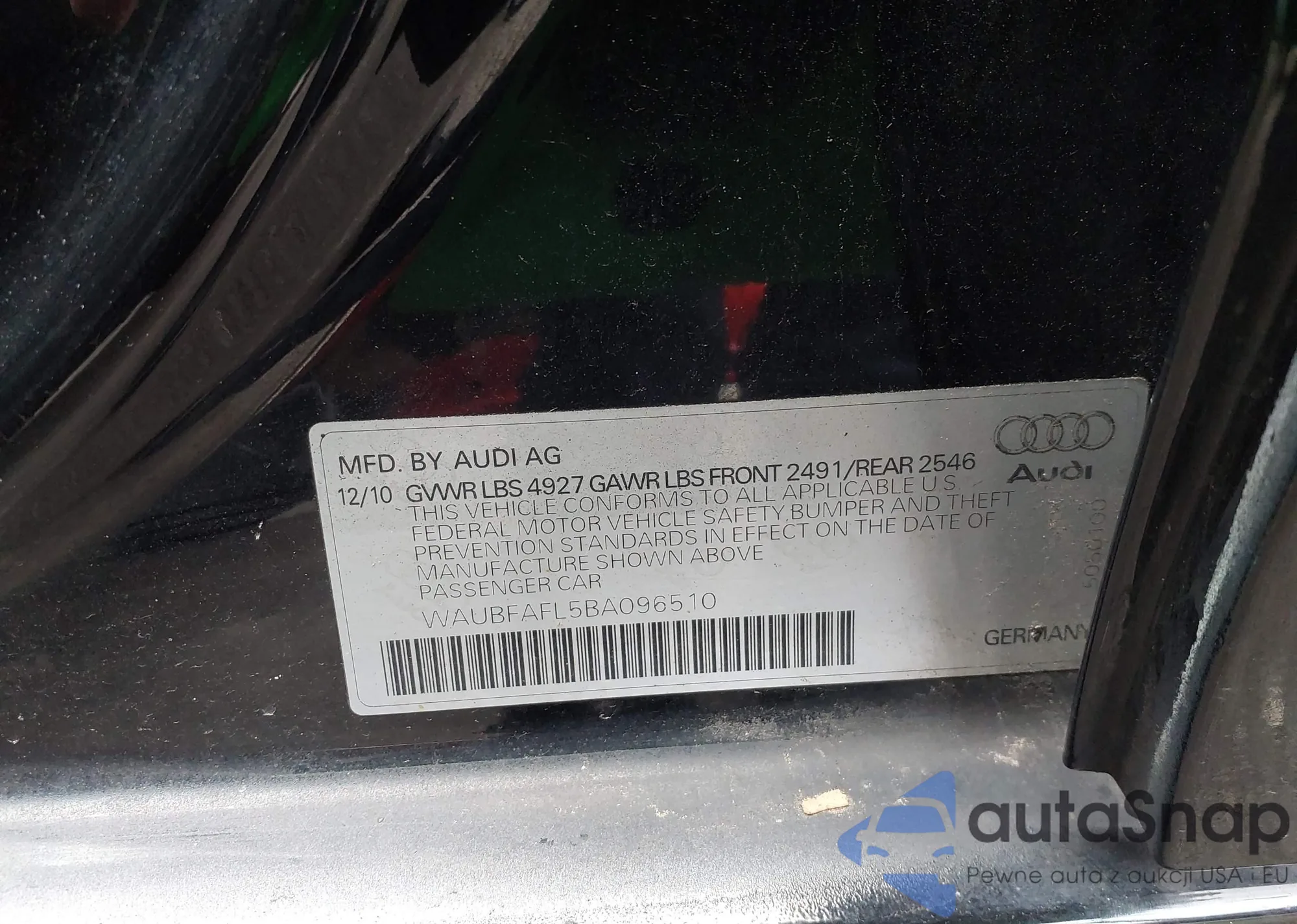 LOT: 43496272 VIN: WAUBFAFL5BA096510