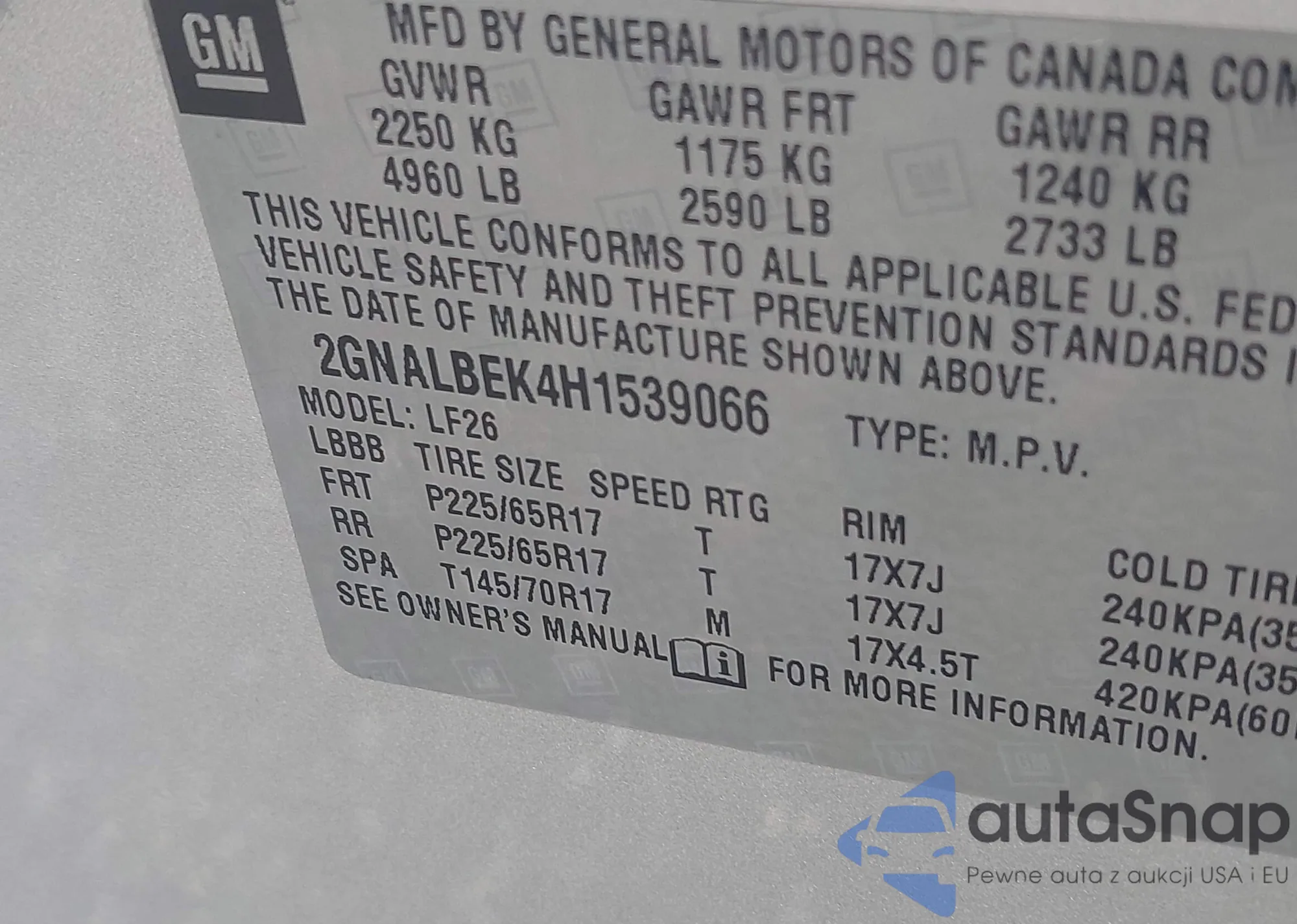 LOT: 43410225 VIN: JM3LW28G8Y0113447