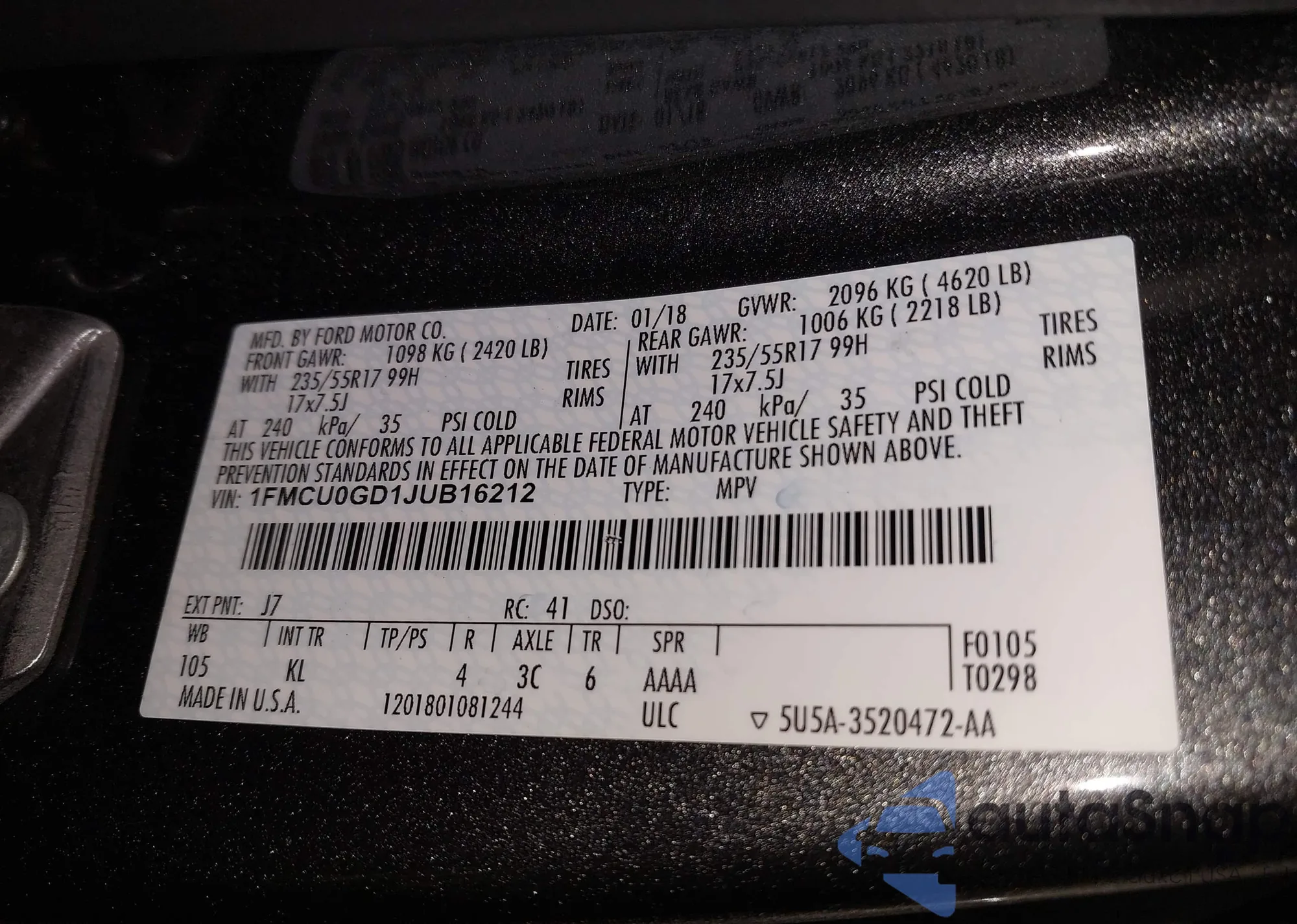 LOT: 43307120 VIN: JF1GJAK61CH016965