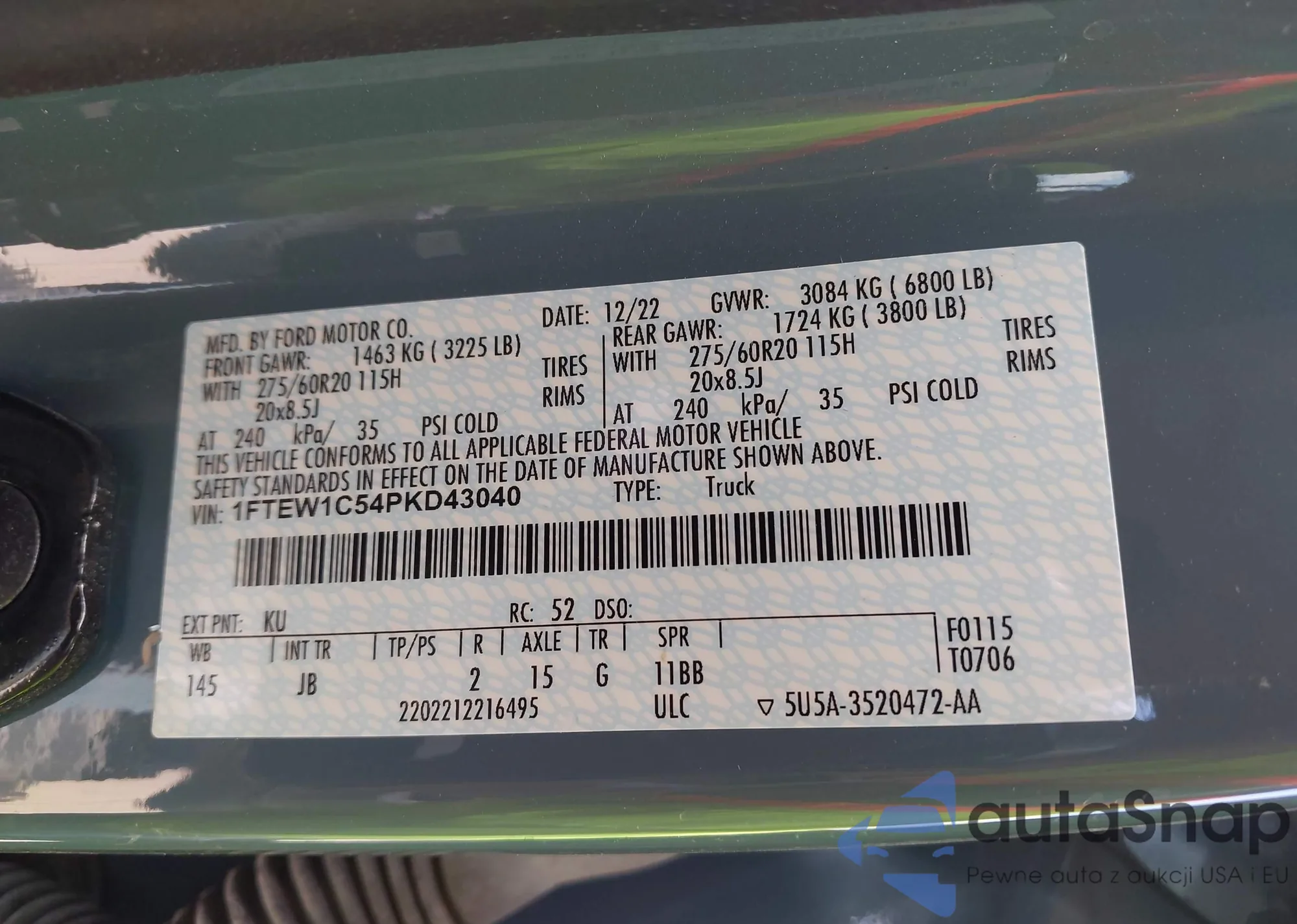 • VIN 1FTEW1C54PKD43040