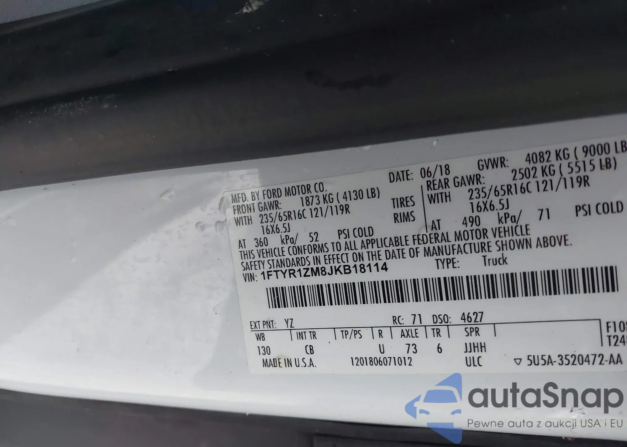 • VIN 1FDYR1ZM8JKB18111