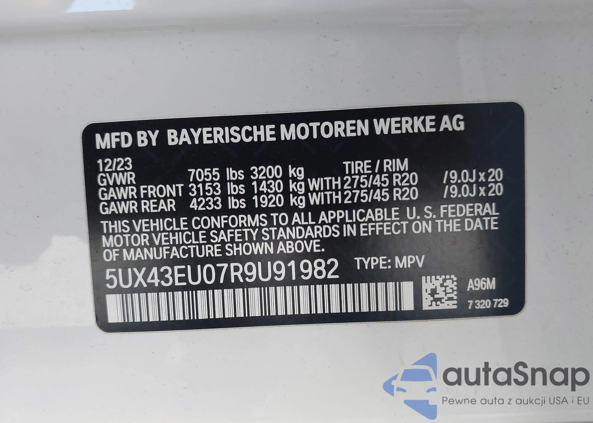 2024 BMW X5 Phev xDrive50E из США, поврежденный, VIN 5UX43EU07R9U91982