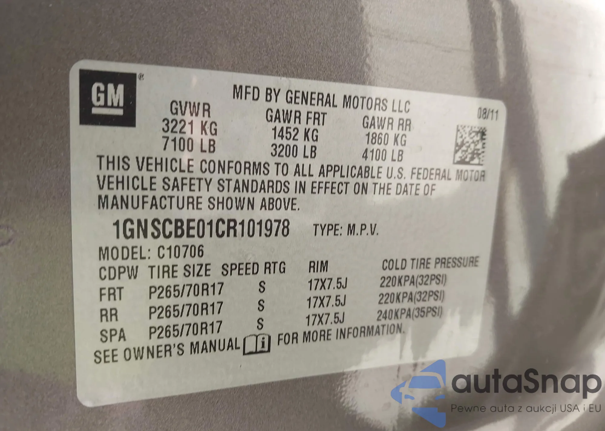 • VIN 1GNSCBE01CR101978