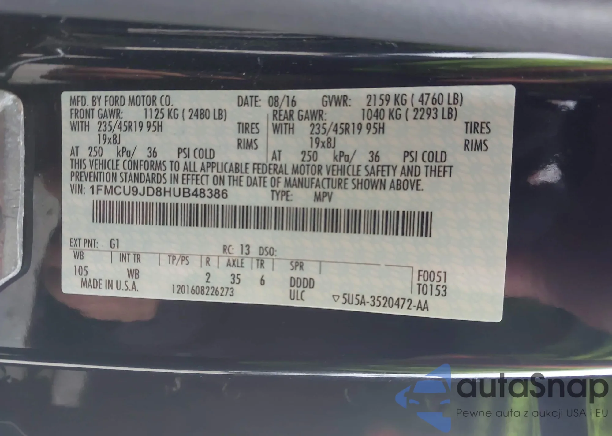 • VIN 1FMCU9JD8HUB48386
