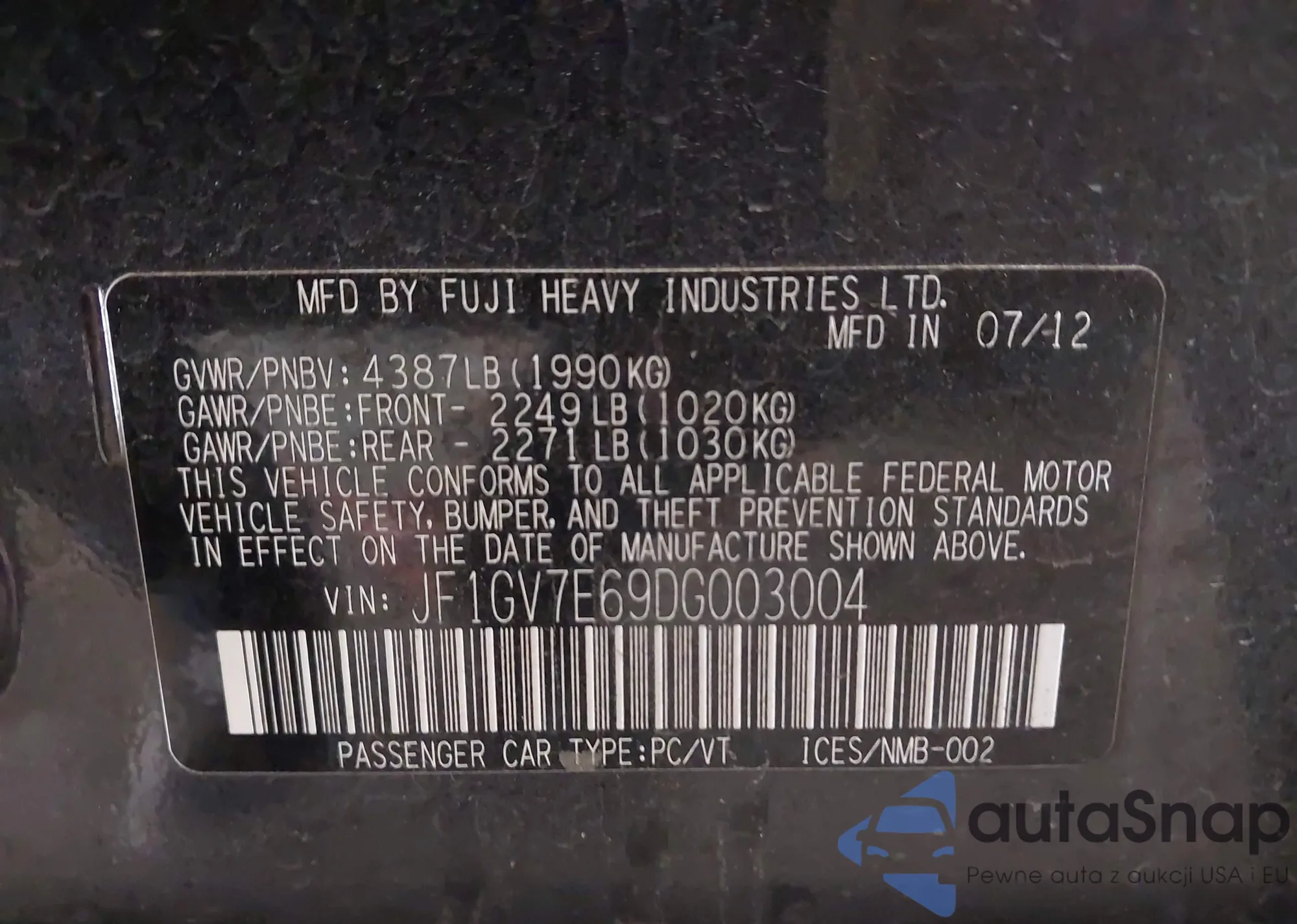 LOT: 43441704 VIN: JF1GV7E69DG003004