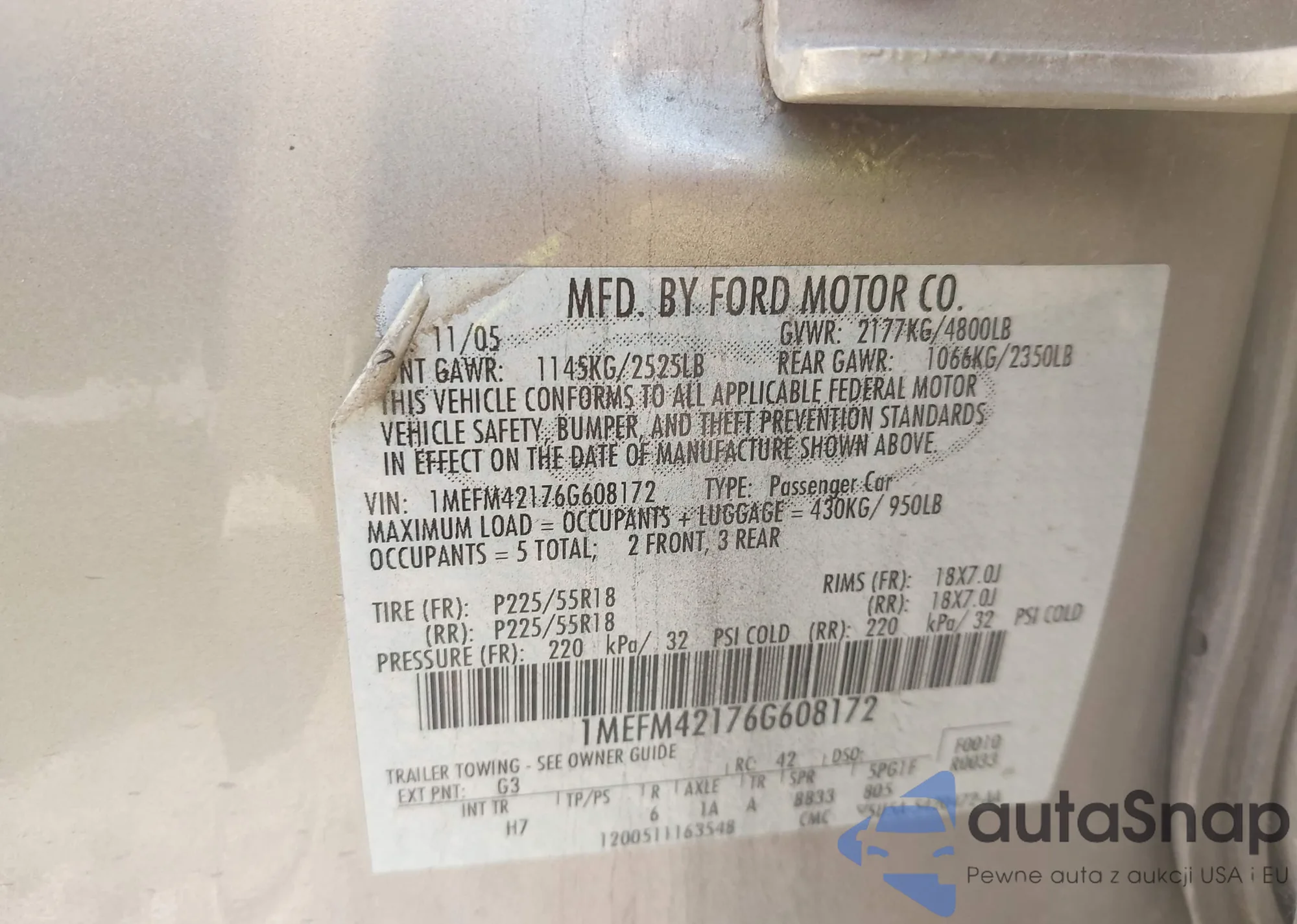 LOT: 43471471 VIN: 1MEFM42176G608172