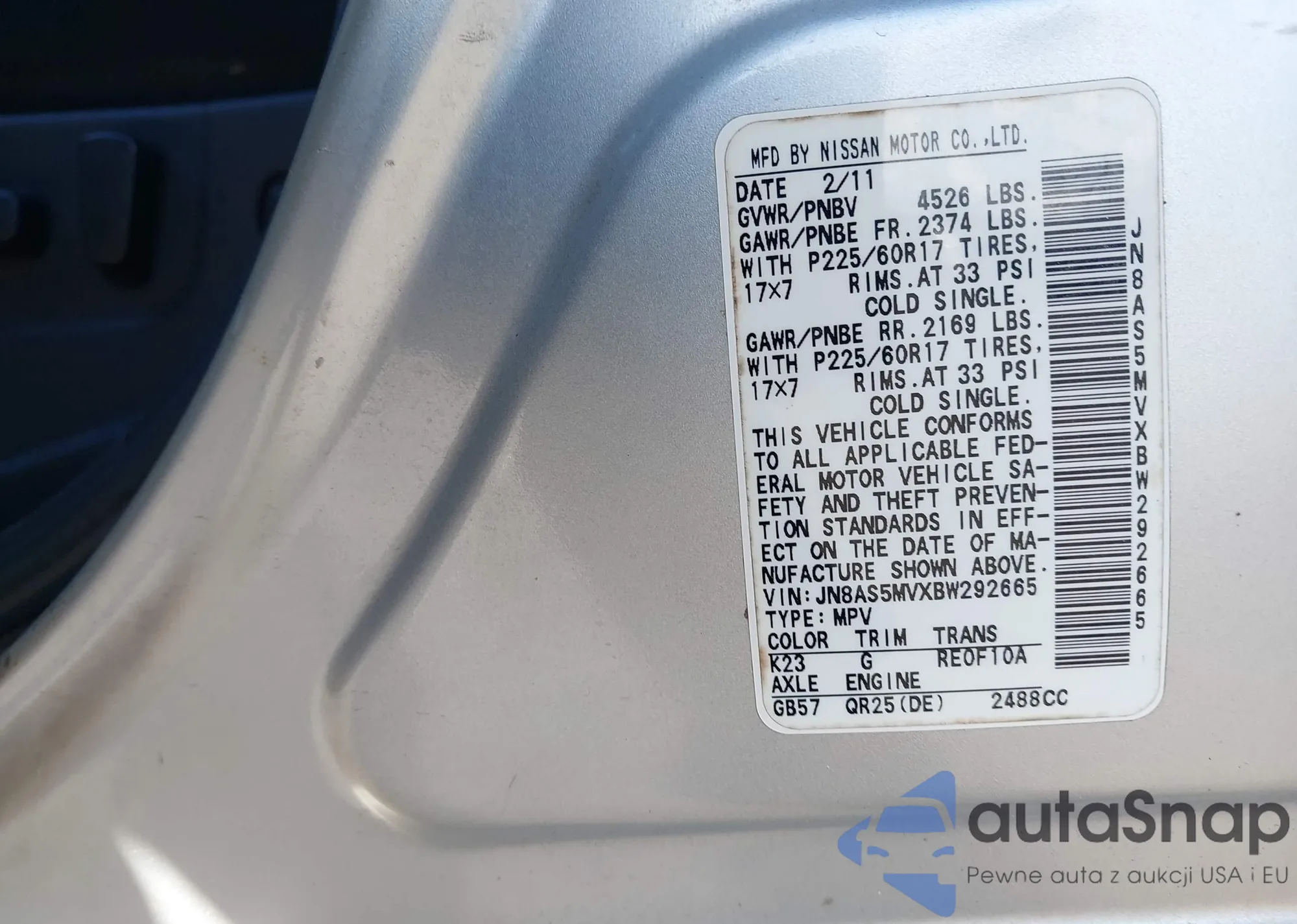 LOT: 43517218 VIN: SAJWA4FB9BLB42697