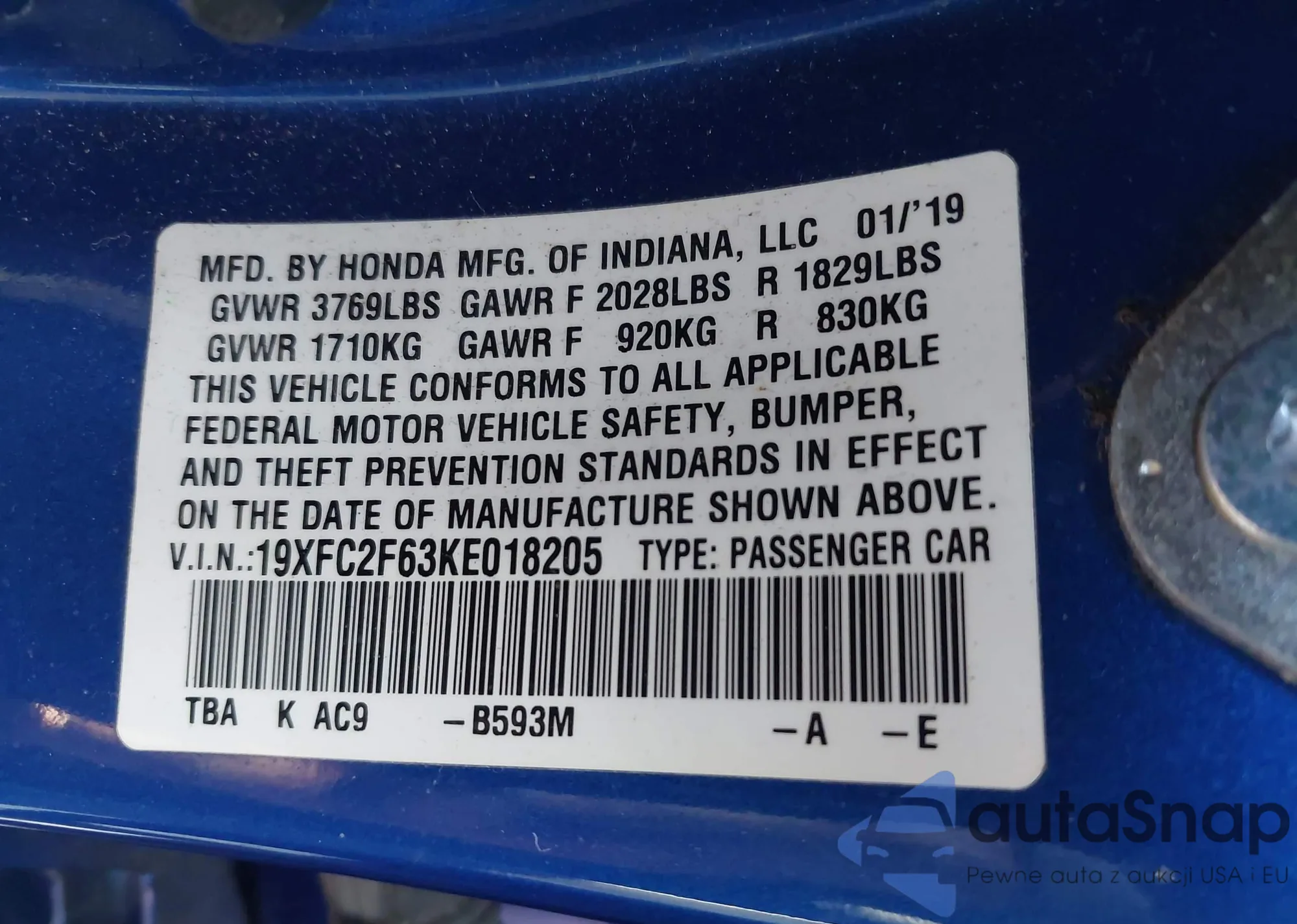 • VIN 19UUB2F56FA015536