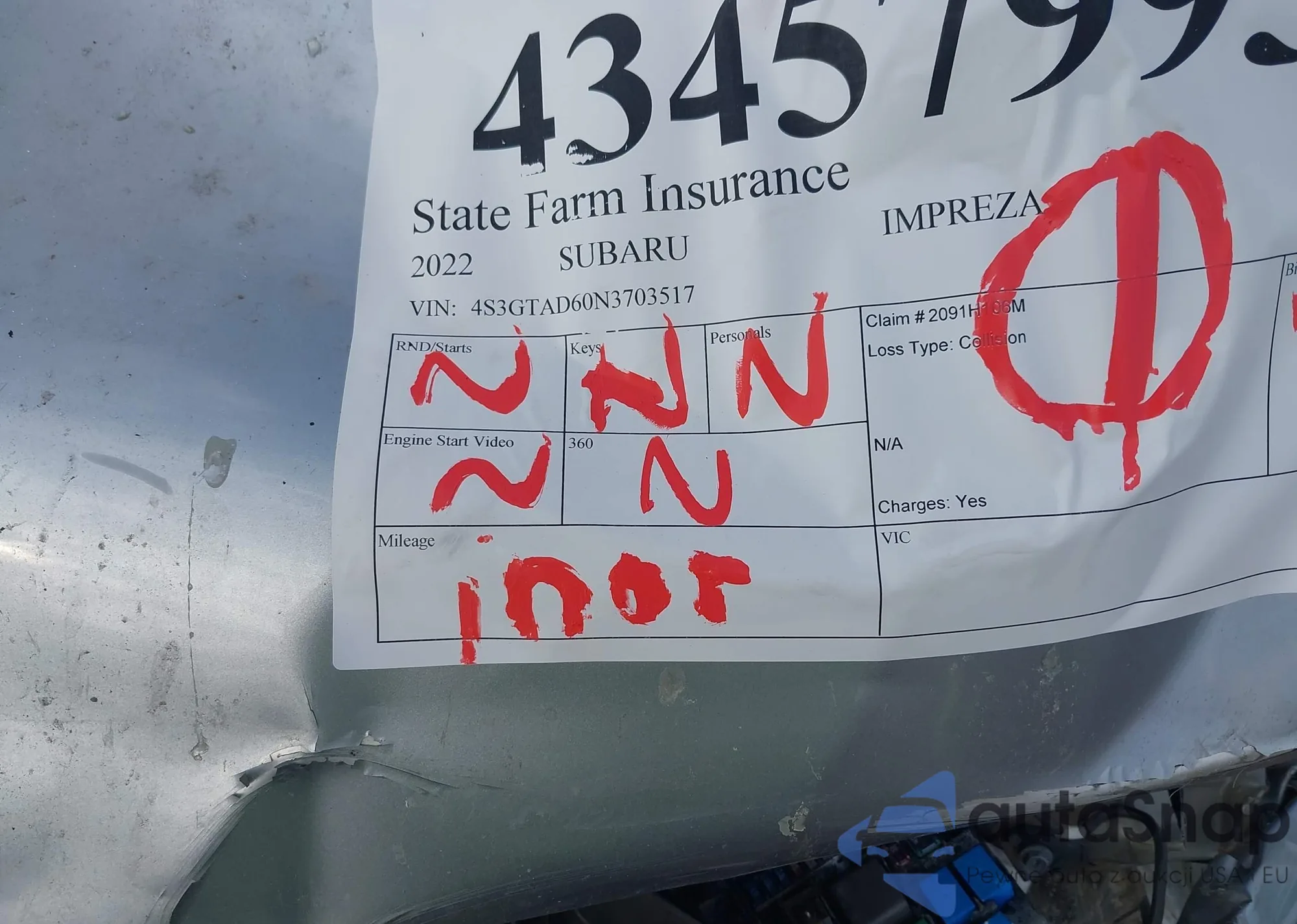 LOT: 43457993 VIN: 4S3GTAD60N3703517