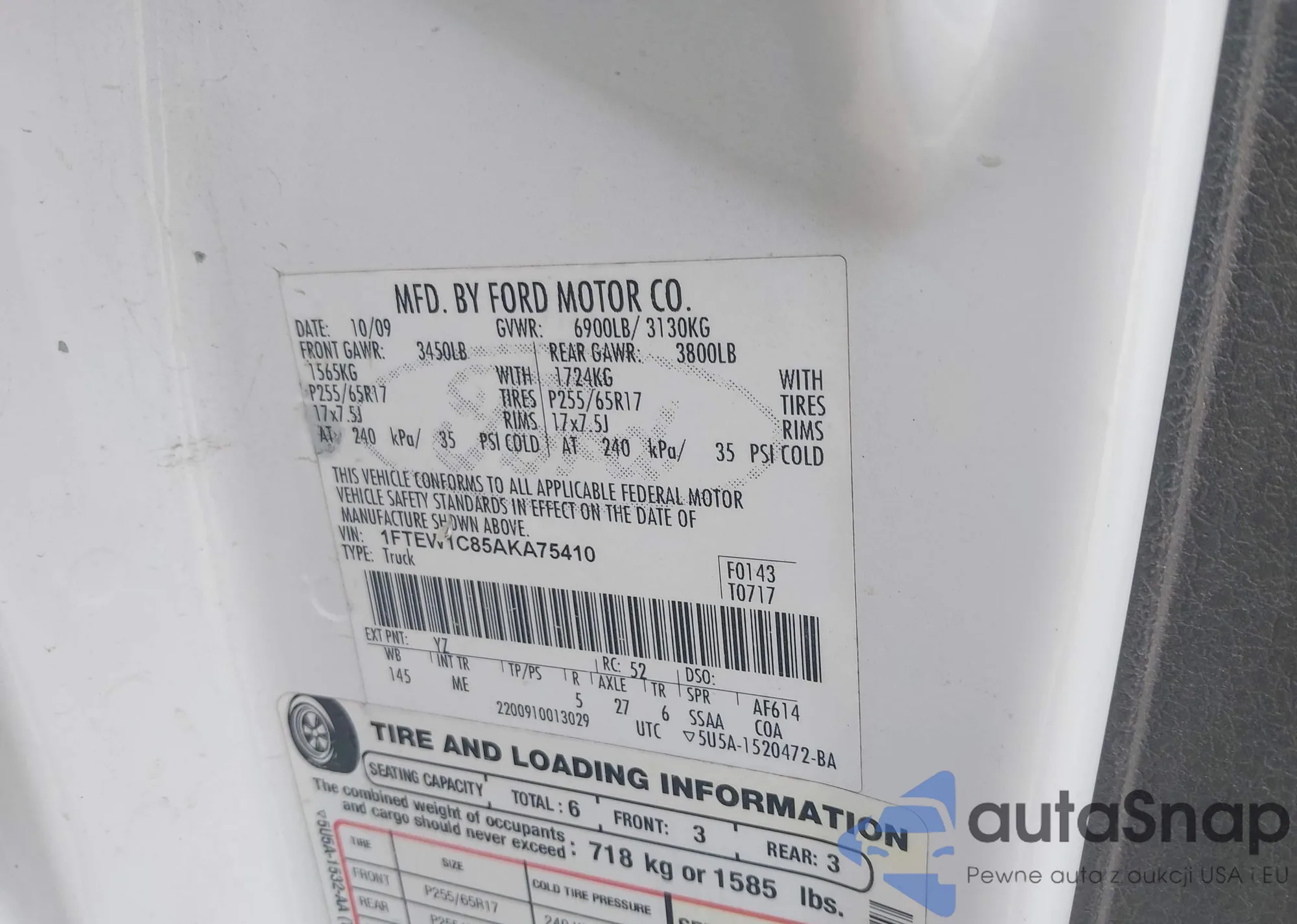 • VIN 1FTEW1C85AKA75410