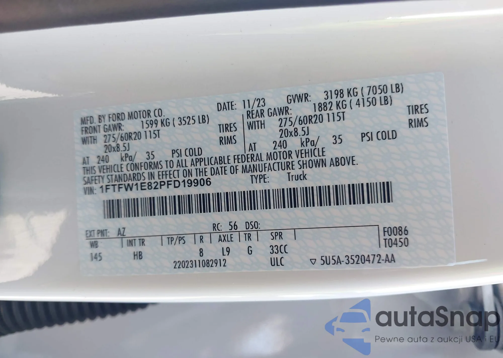 LOT: 40471435 VIN: 1FTFW1E82PFD19906