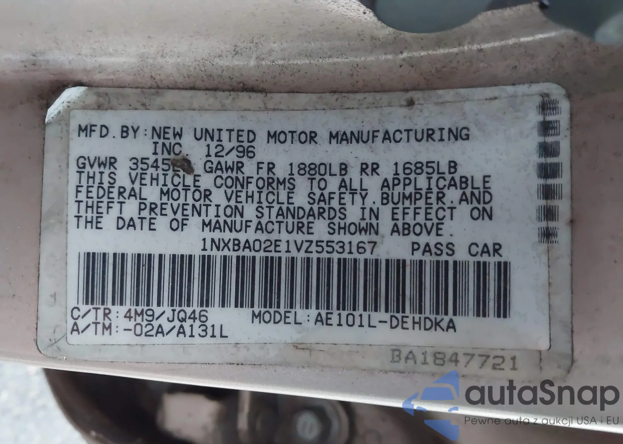 • VIN 1NXBA02E1VZ553167