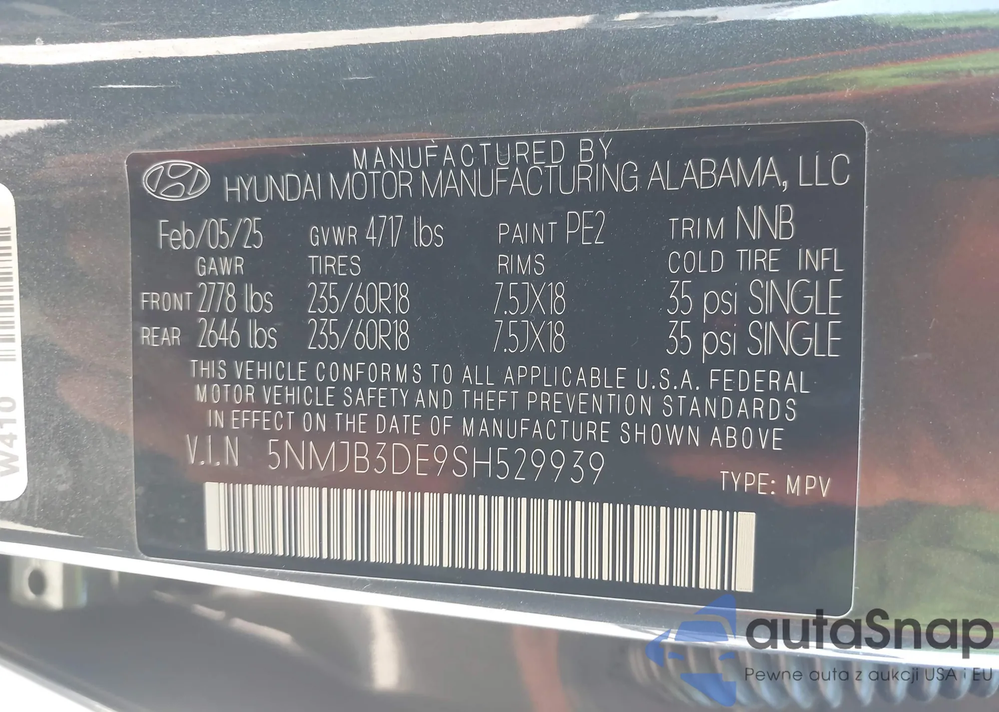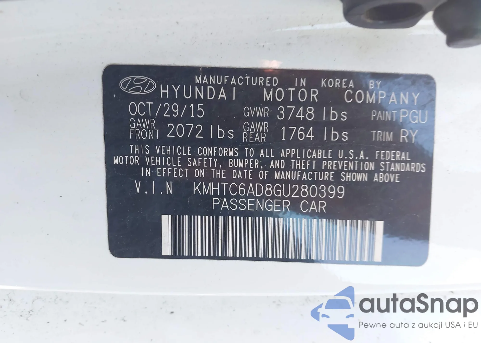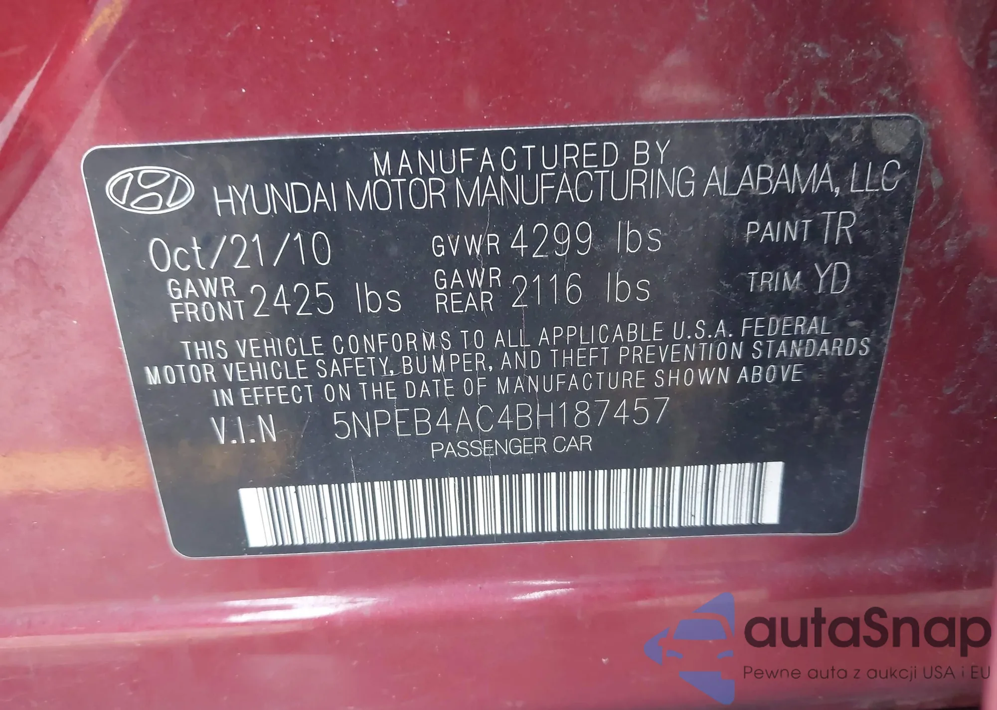 • VIN 5NPEB4AC4BH187457