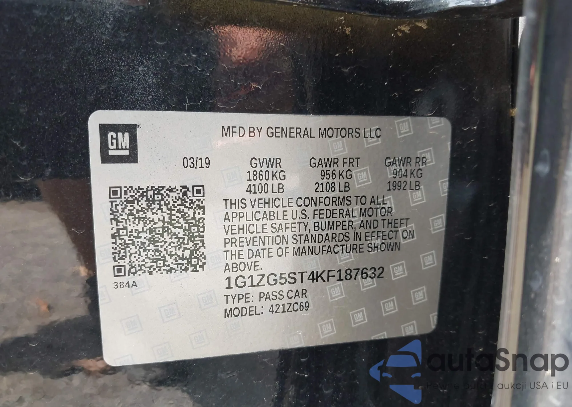 • VIN 1G1ZG5ST4KF187632