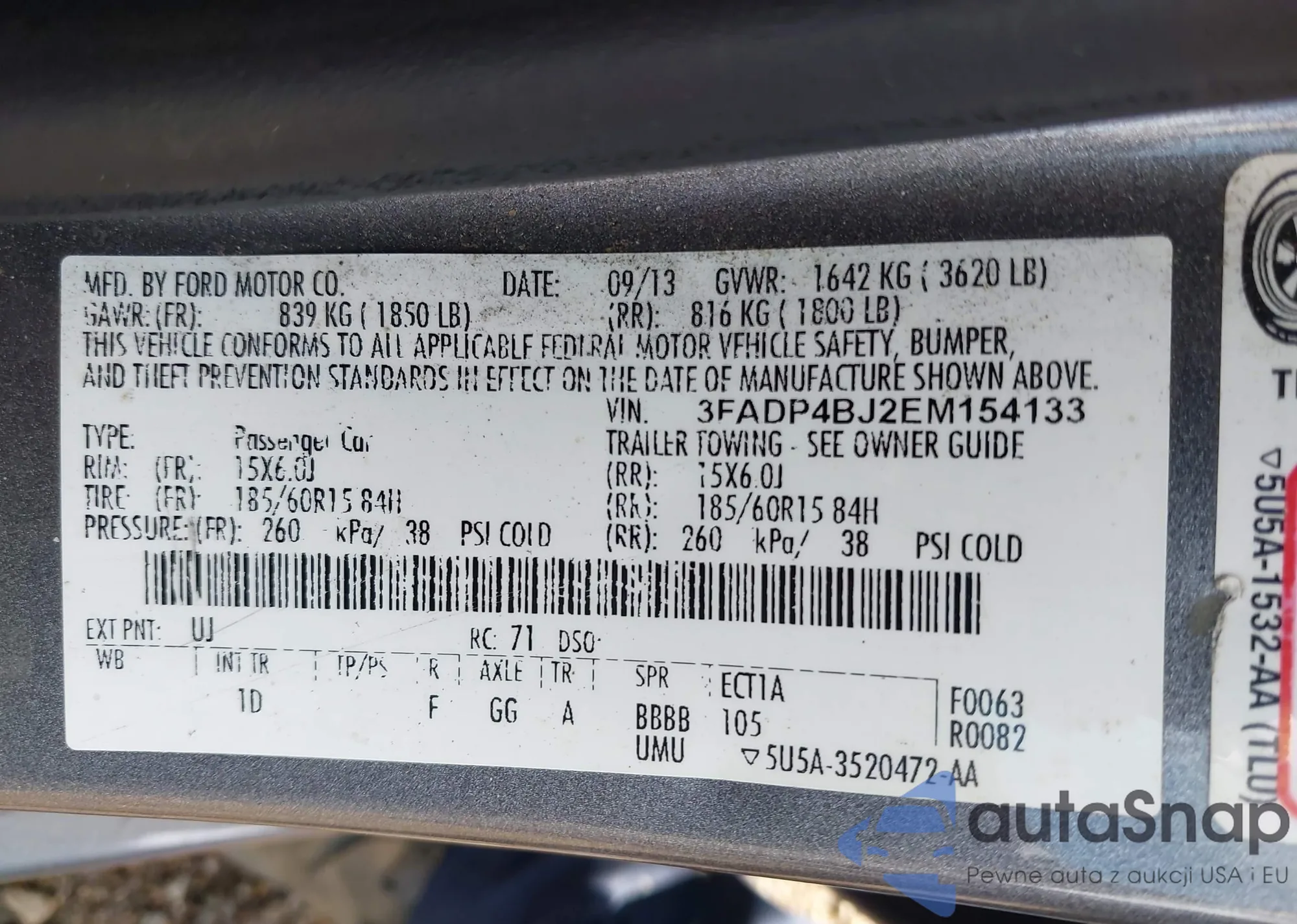 LOT: 43699309 VIN: 3FADP4BJ2EM154133