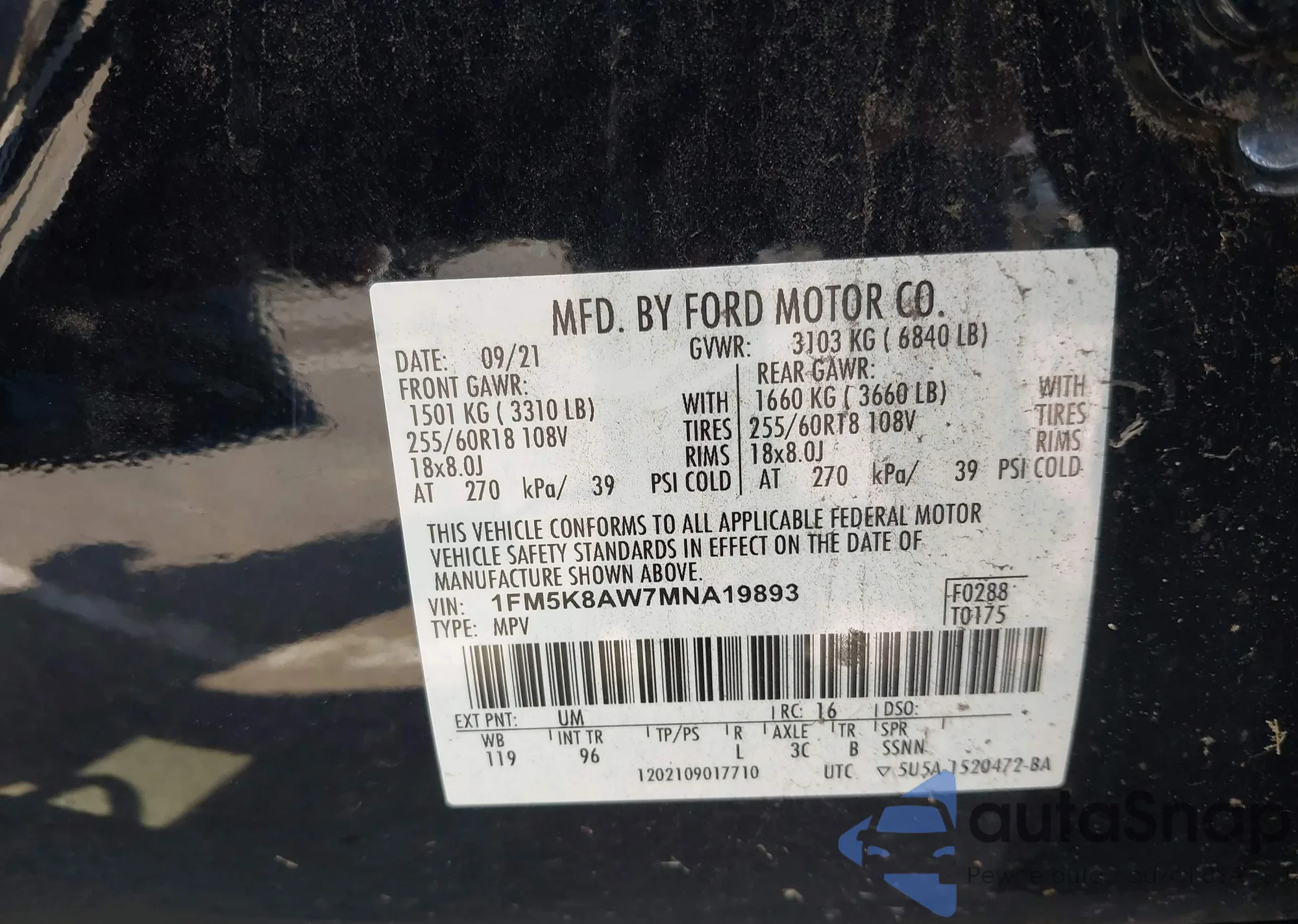 • VIN 1FM5K8AW7MNA19893