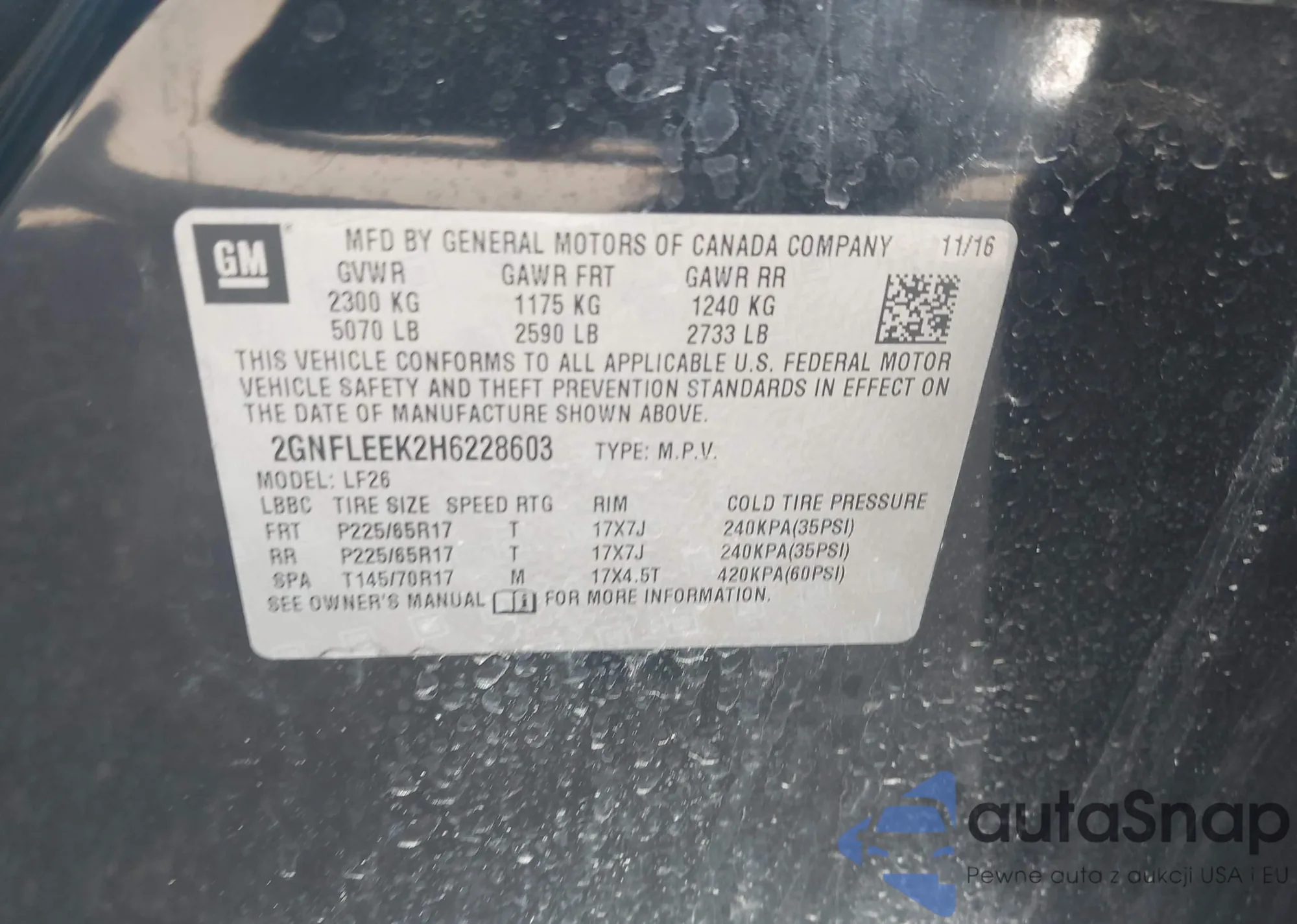 • VIN 5GAKRAKD3EJ130071