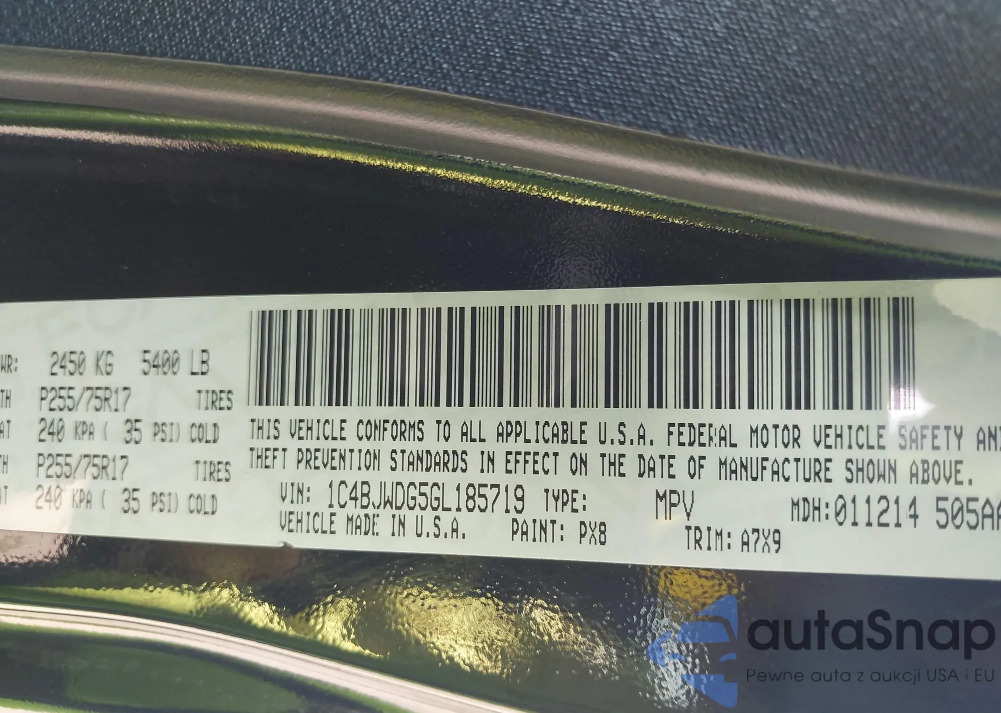 • VIN 1C4BJWDG5GL185719